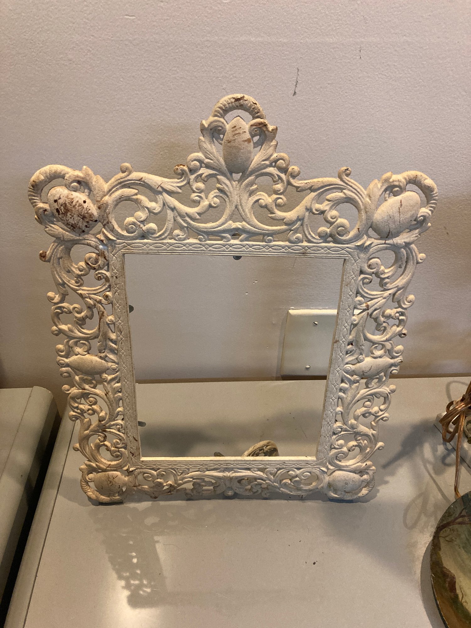 Nice frame has easel lever on back to make it free standing picture opening appears to be 8x10 inches