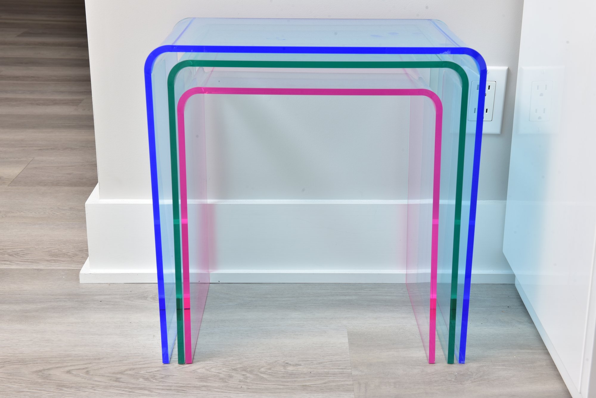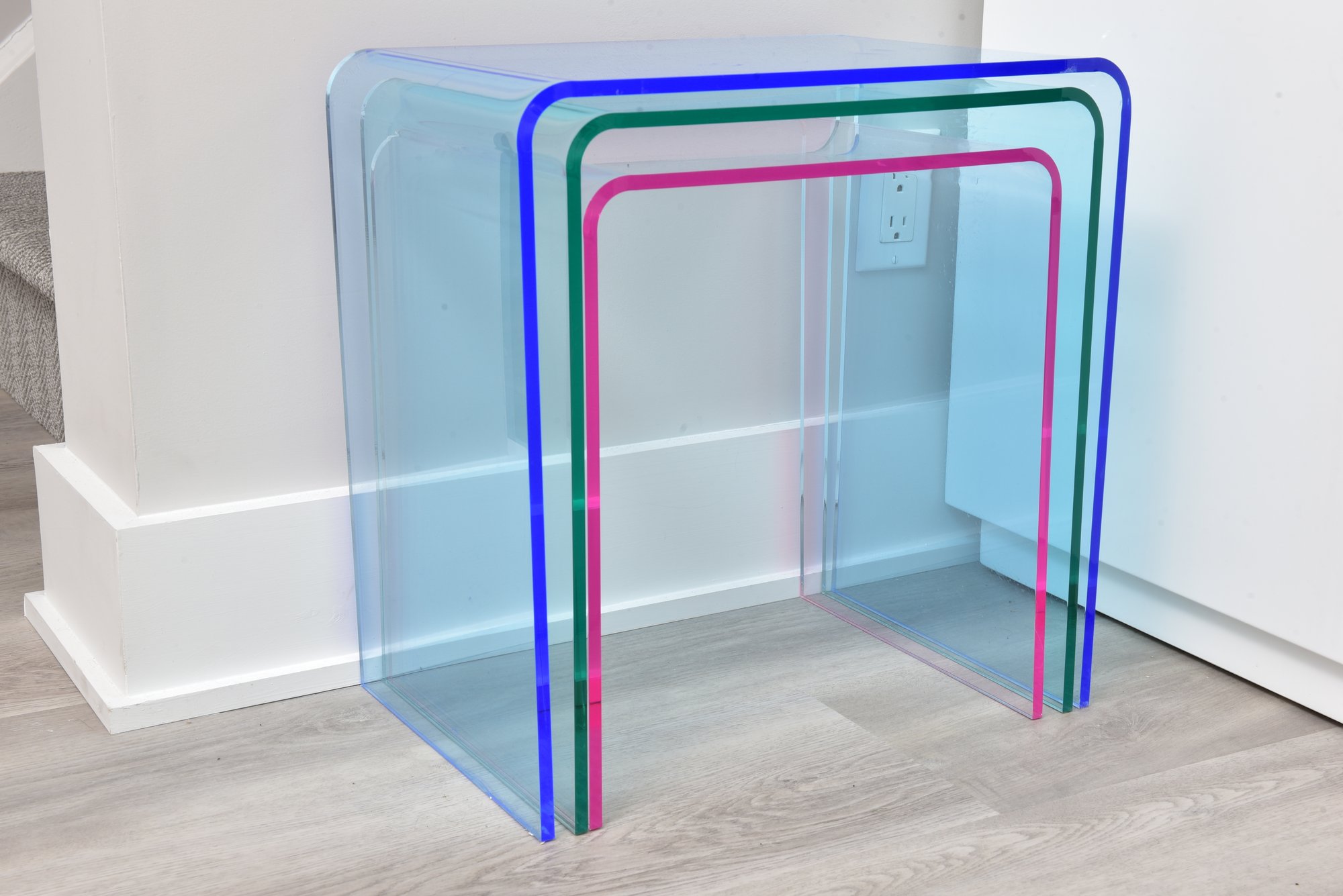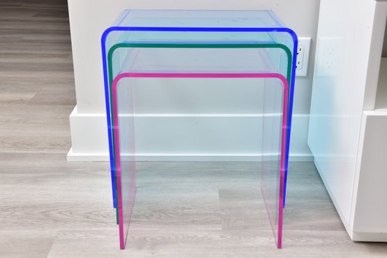 CB2 Three Piece Peekaboo Colored Acrylic Nesting Table Set (1 Of 2)
