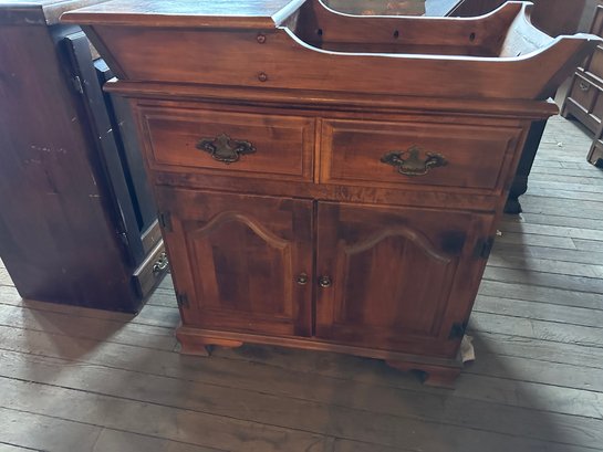 with lift to compartment on top single drawer and 2 cabinets 37 x 17 1/2 x 38. Good condition