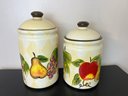 Pair of ceramic "Harlequin Fruit" pattern lidded cannisters.