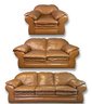 Extremely comfortable and well made by Cerrito although missing tags. This set is beyond comfortable and will potentially lull you to sleep. This trio has been well loved, not abused and well taken care of - minor wear marks throughout. Some leather conditioner will go a long way for a quick rejuvenation.