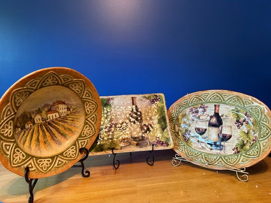 14" bowl; oval platter 16"; Rectangle platter 14" and round plate added later