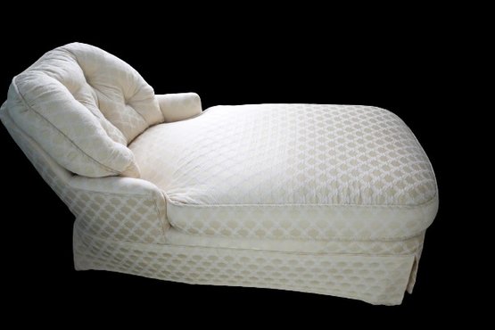 Tufted back, skirted bottom, trellis pattern.