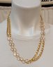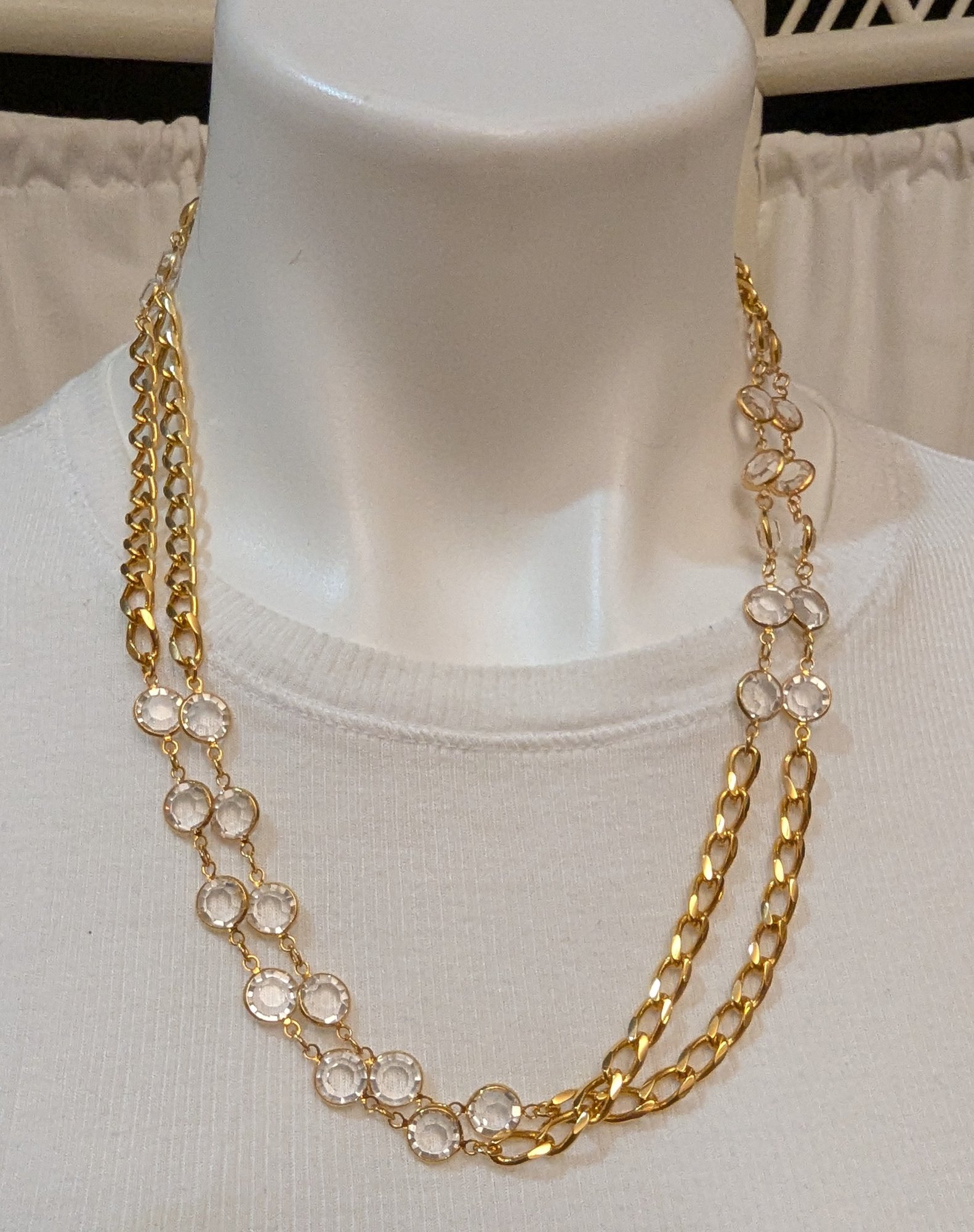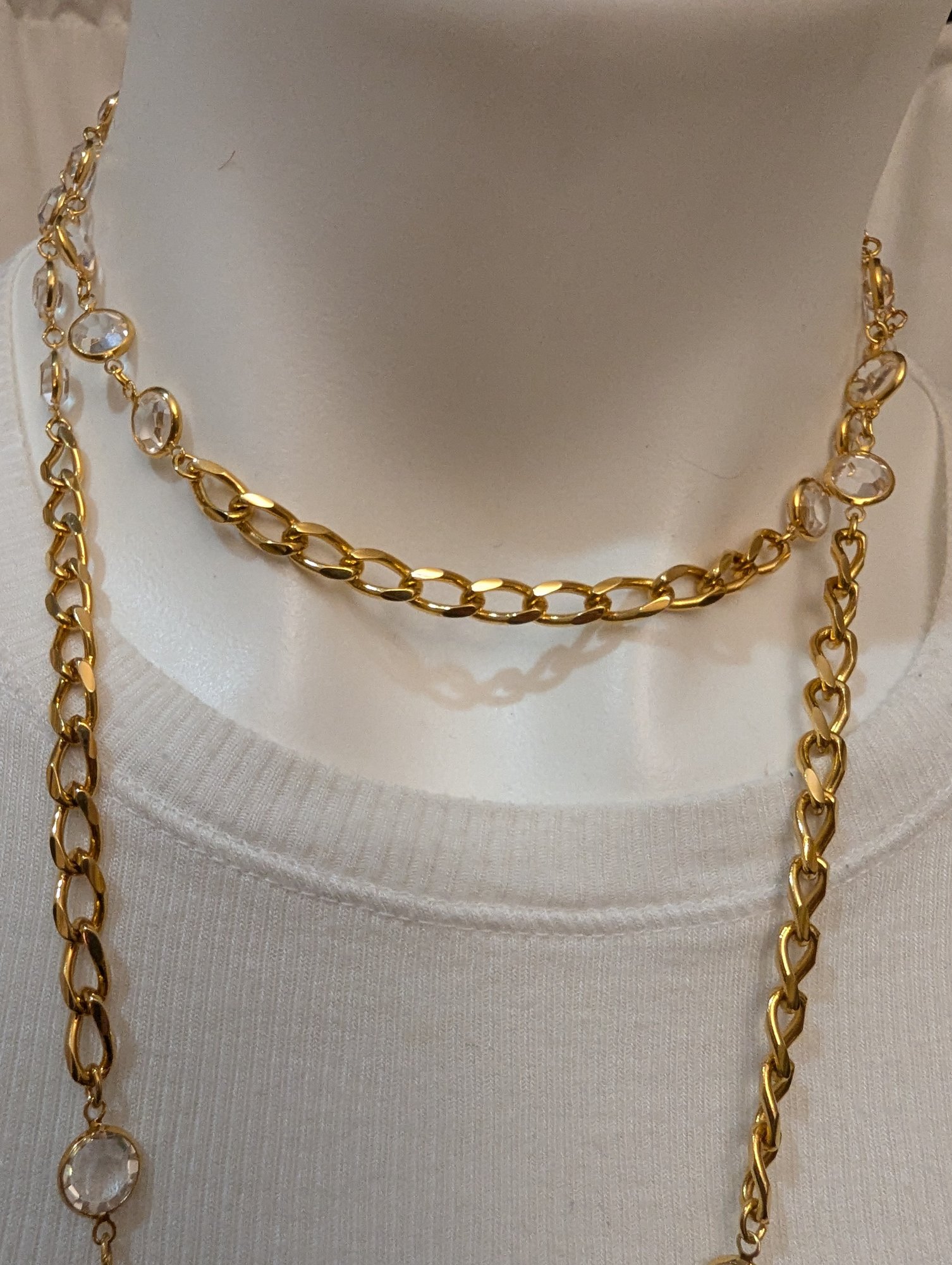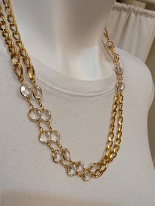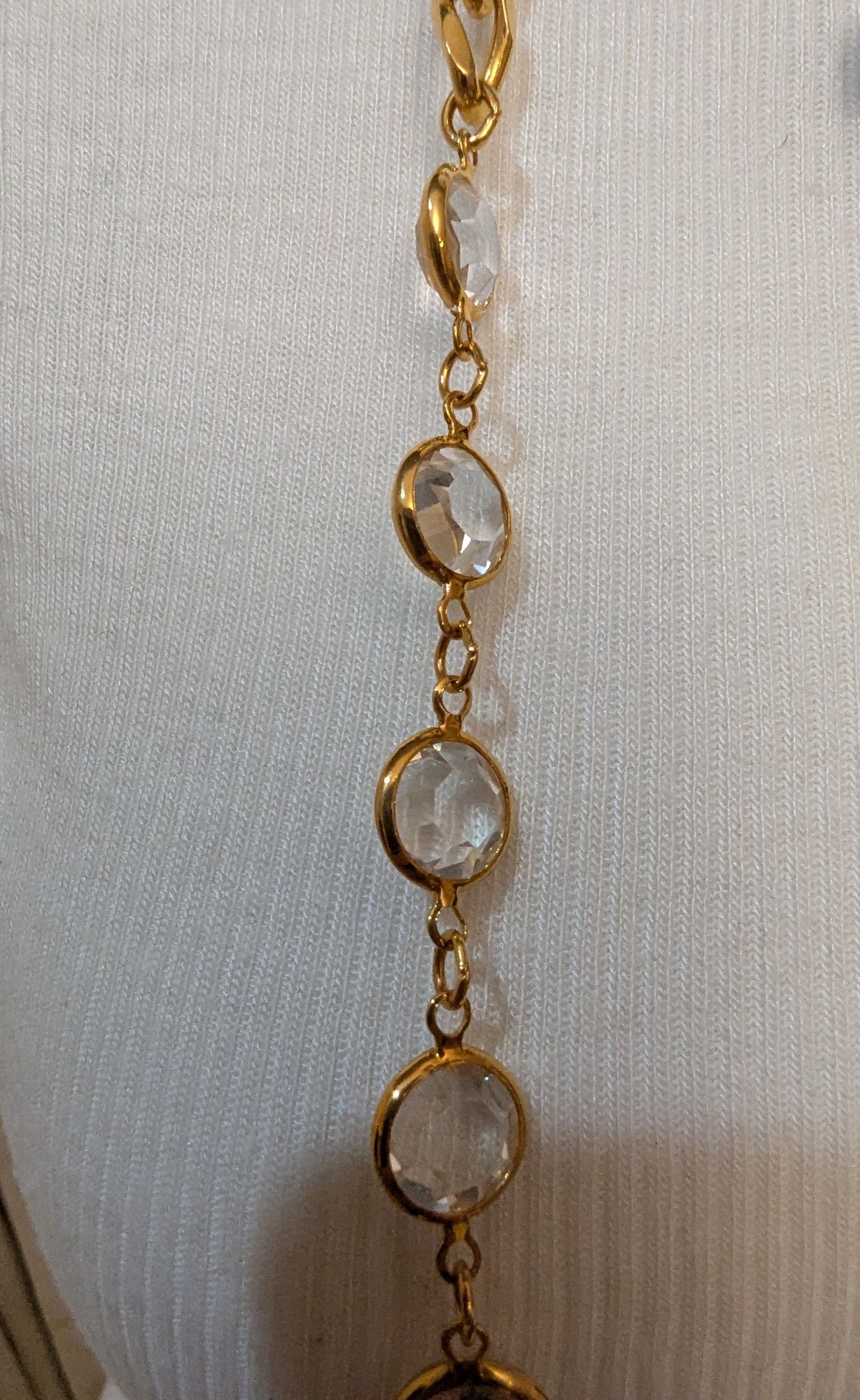 Channel Style 40" Clear Facet Cut Crystals Open Bezel Necklace In Gold Plate