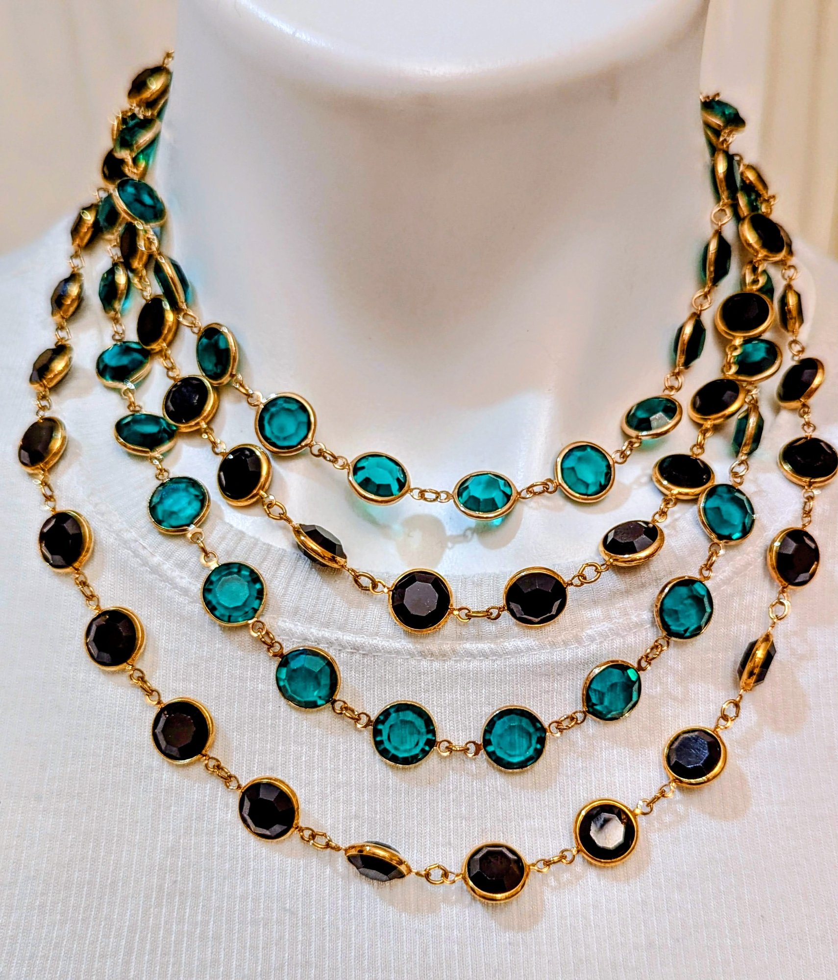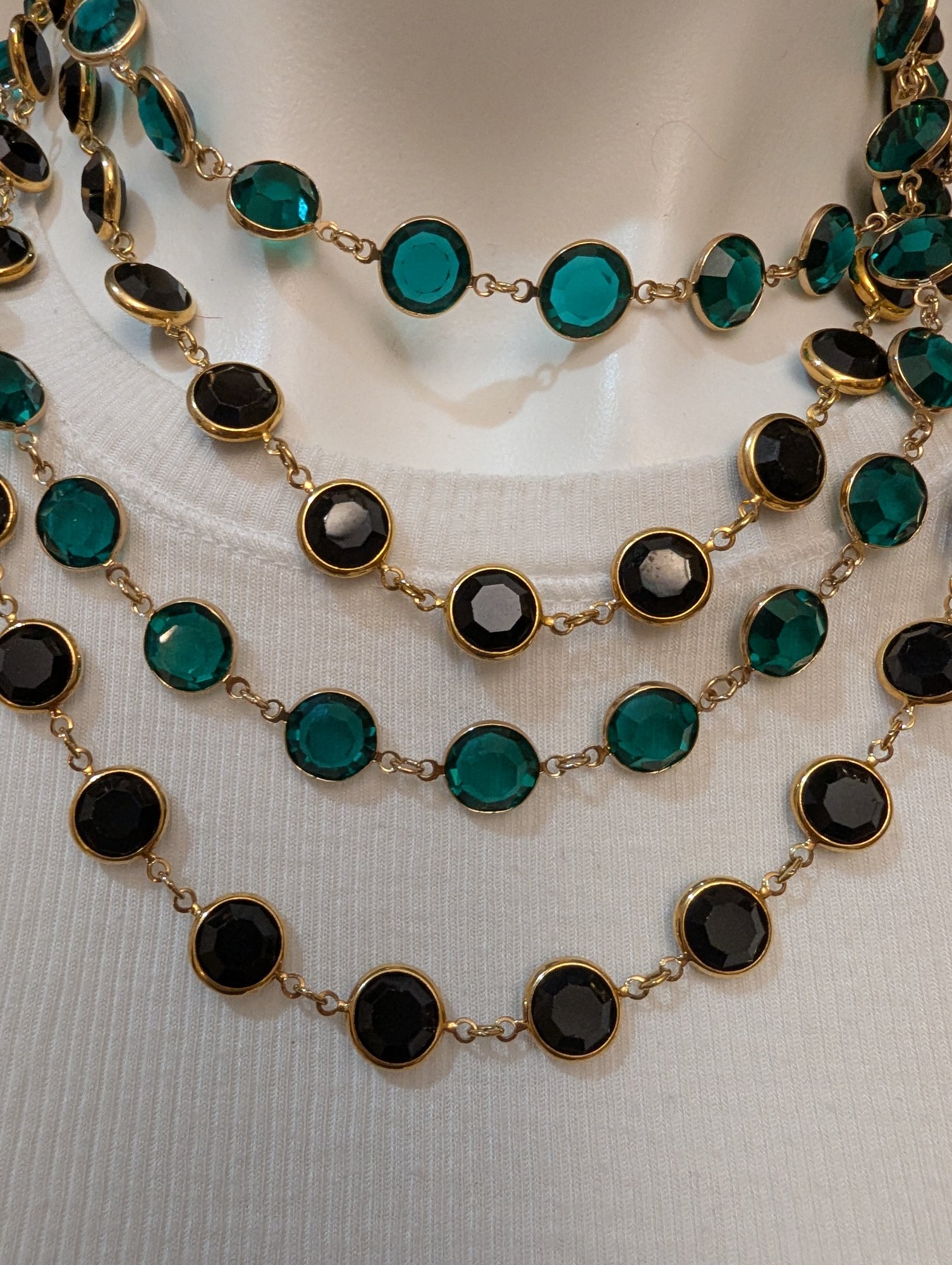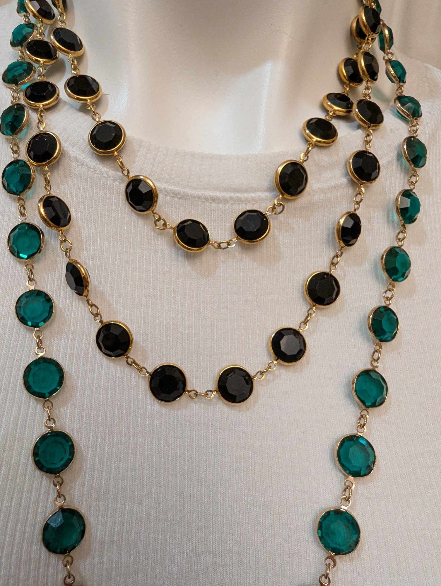 Channel Style Emerald & Black Faceted Cut Crystals /gold Plated/ Open Bezel Necklacess