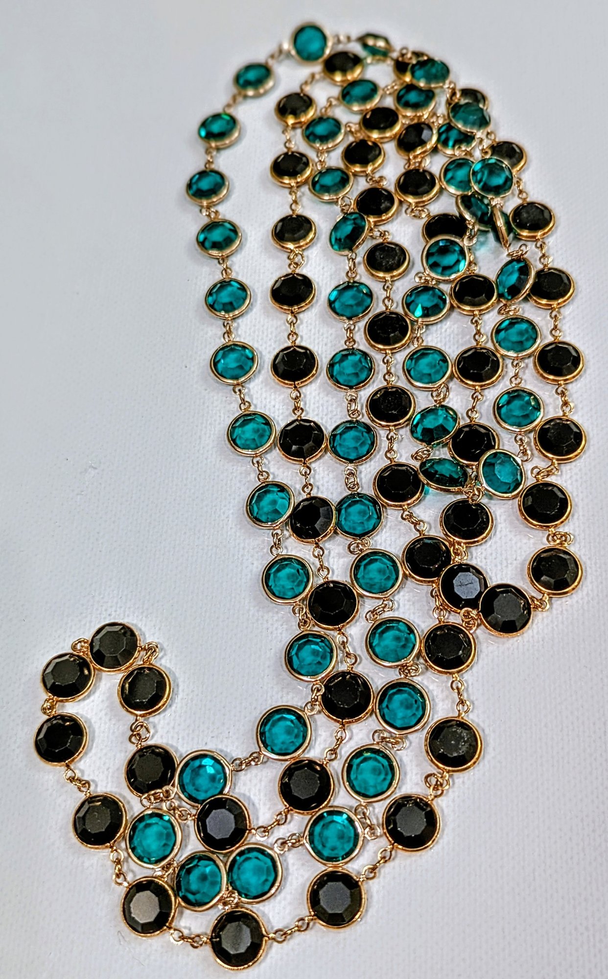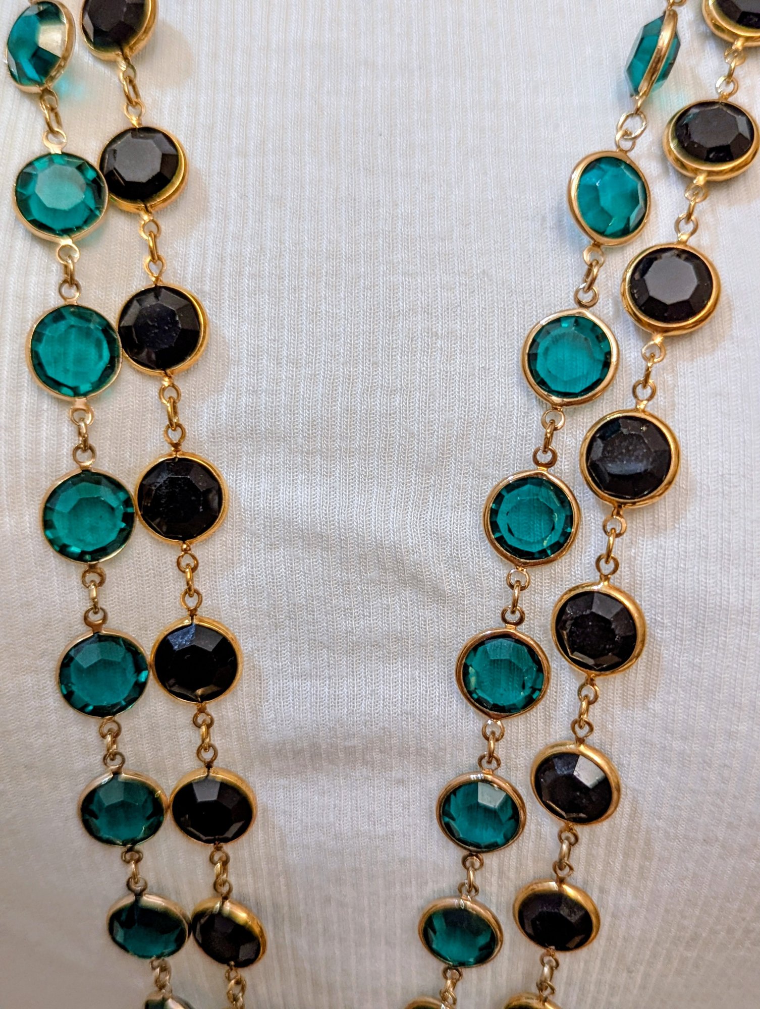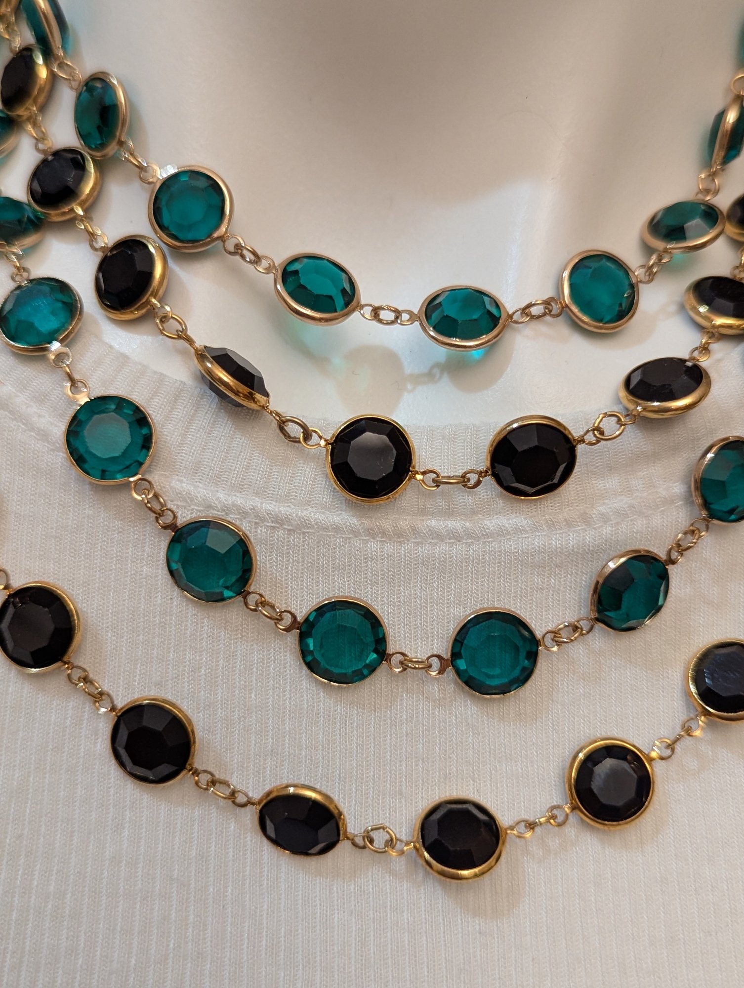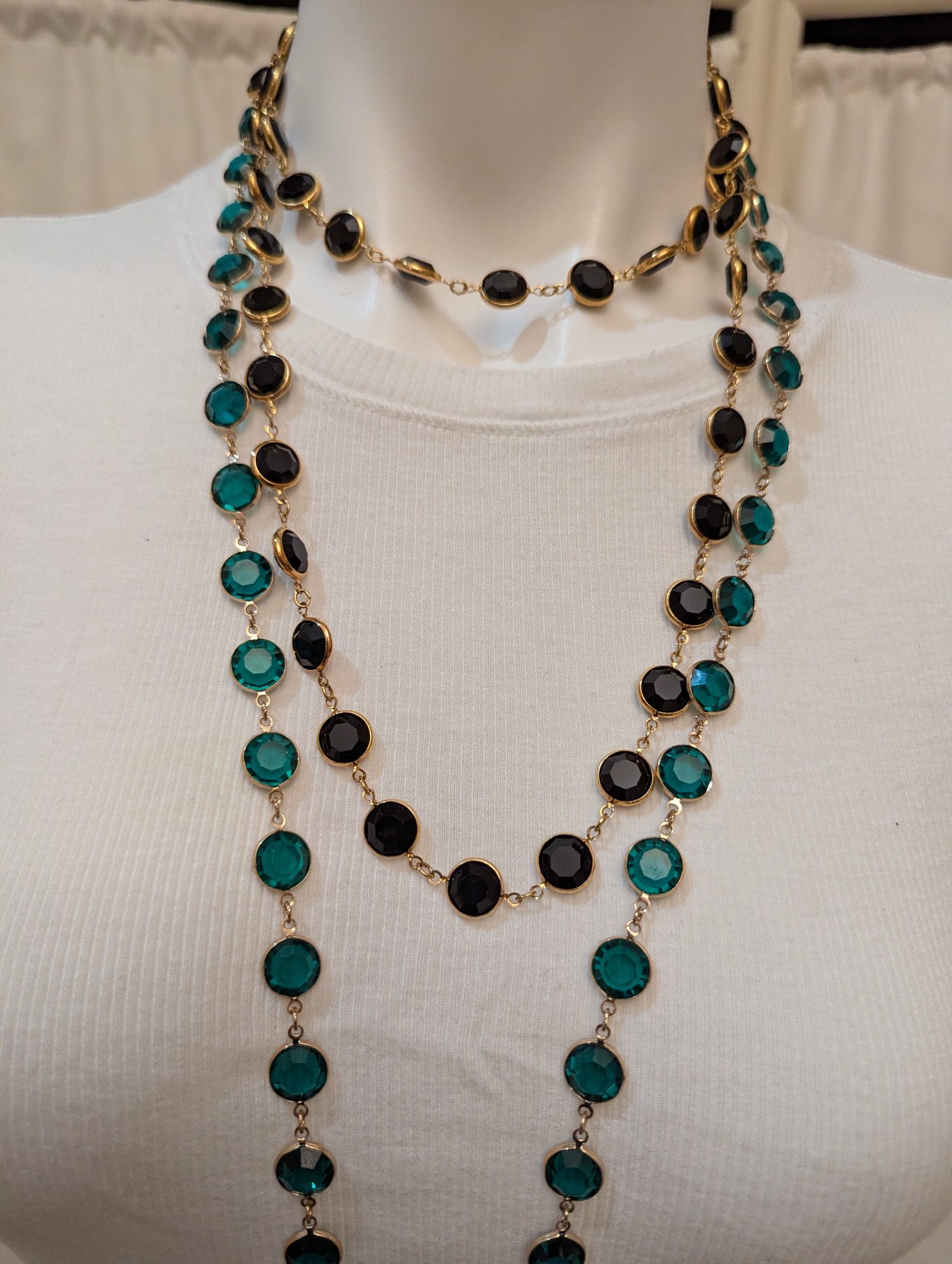 Channel Style Emerald & Black Faceted Cut Crystals /gold Plated/ Open Bezel Necklacess