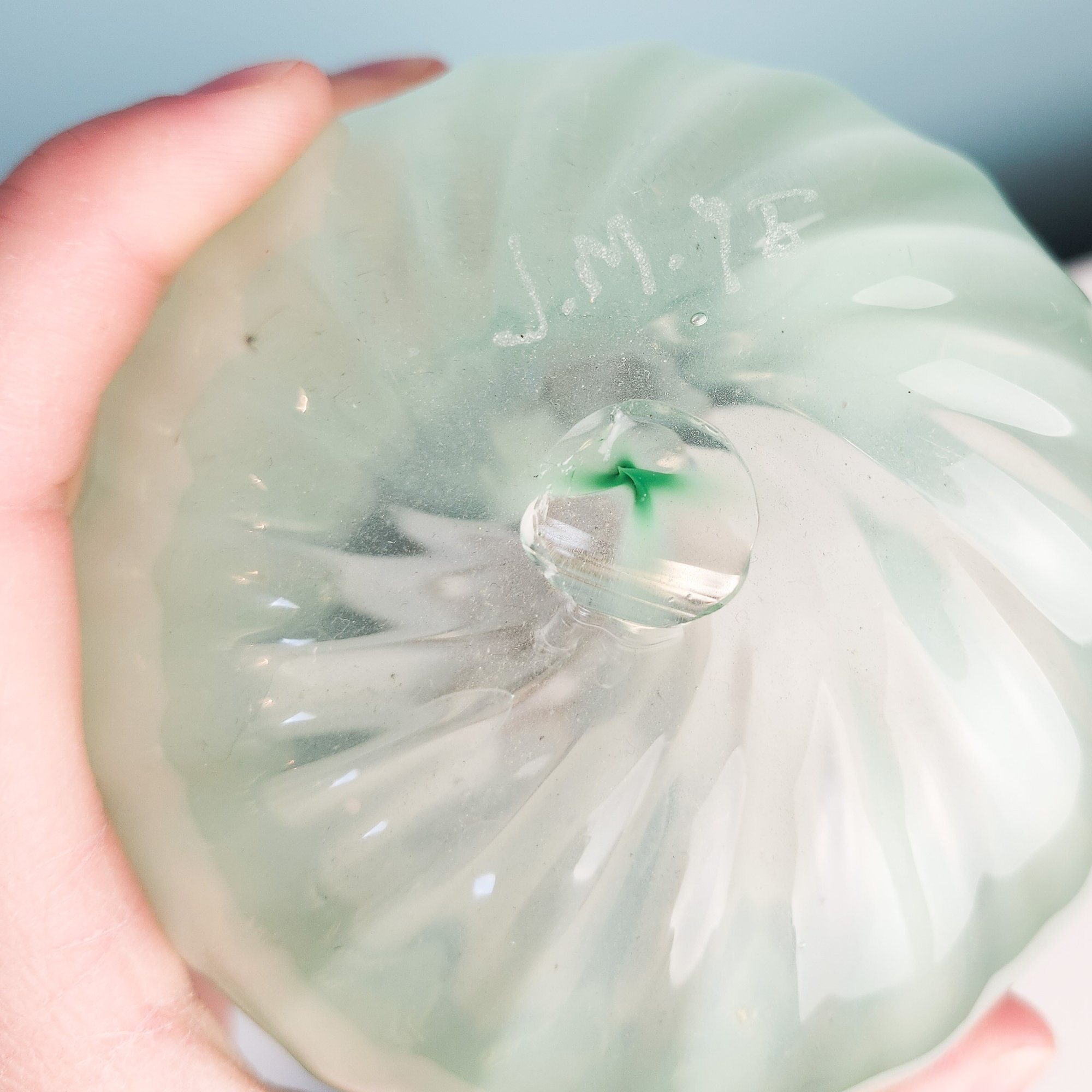 One antique mercury glass vase. Measurements of mercury glass.