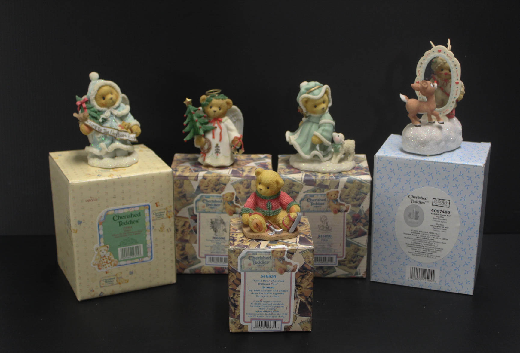 Priscilla Hillmann, began as a self-taught artist, she emerged as a popular children’s book illustrator. Her Cherished Teddies drawings began in 1980, she then partnered with the Ensco Corporation and in 1992 the Cherished Teddy collection made its debut.