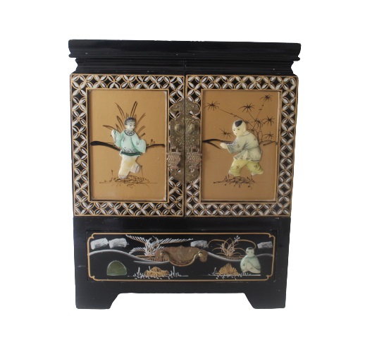 Black lacquered with inlay including Mother Of Pearl, 4 drawers