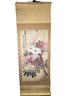 Large Chinese watercolor painting featuring very realistic roses in blush and white with drops of dew on the petals, signed with description in calligraphy in the upper left.