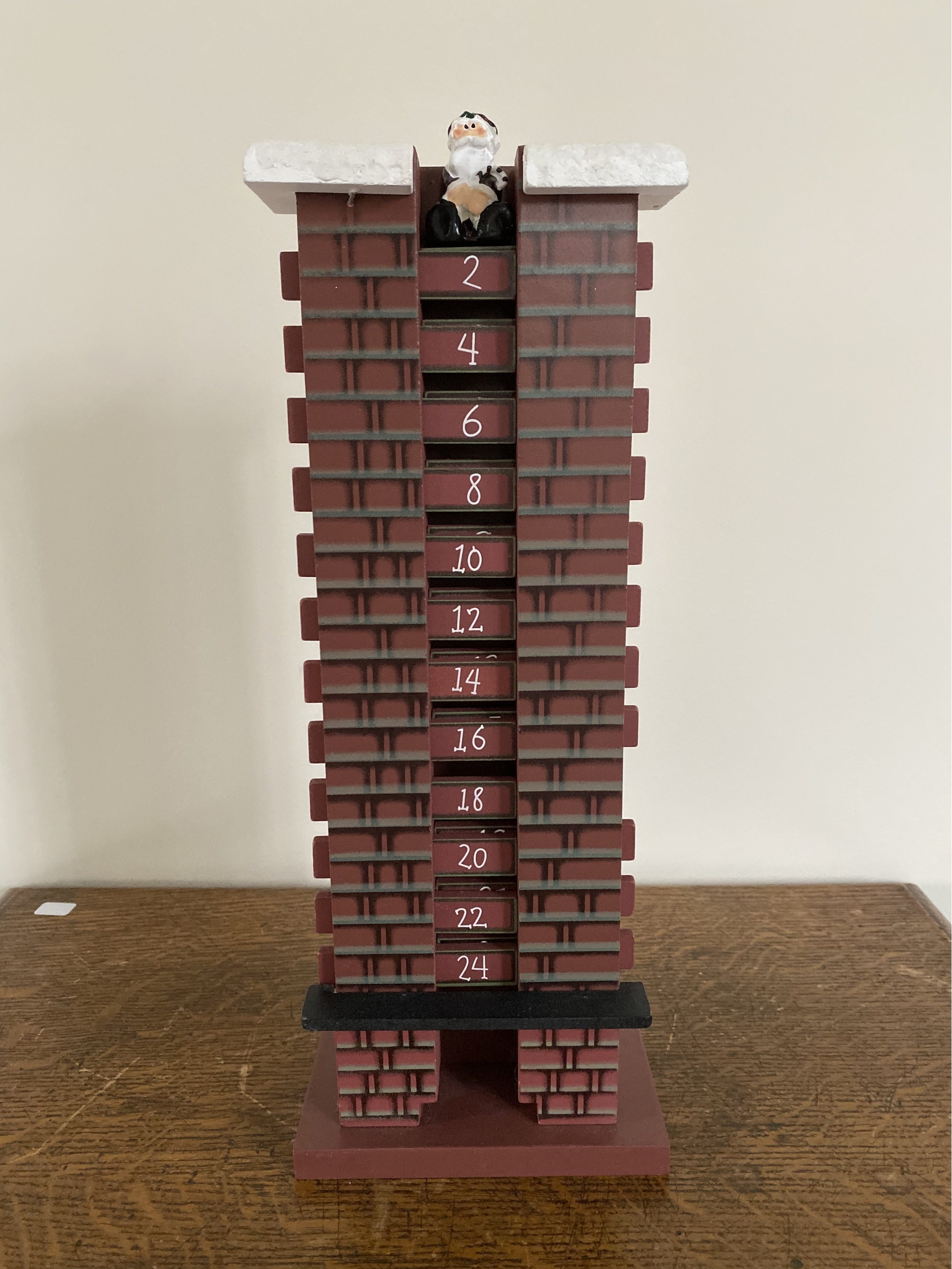Wooden advent calendar - pull out the wooden tabs daily and Santa drops further and further down the chimney. Fun to count down to Christmas with kids!