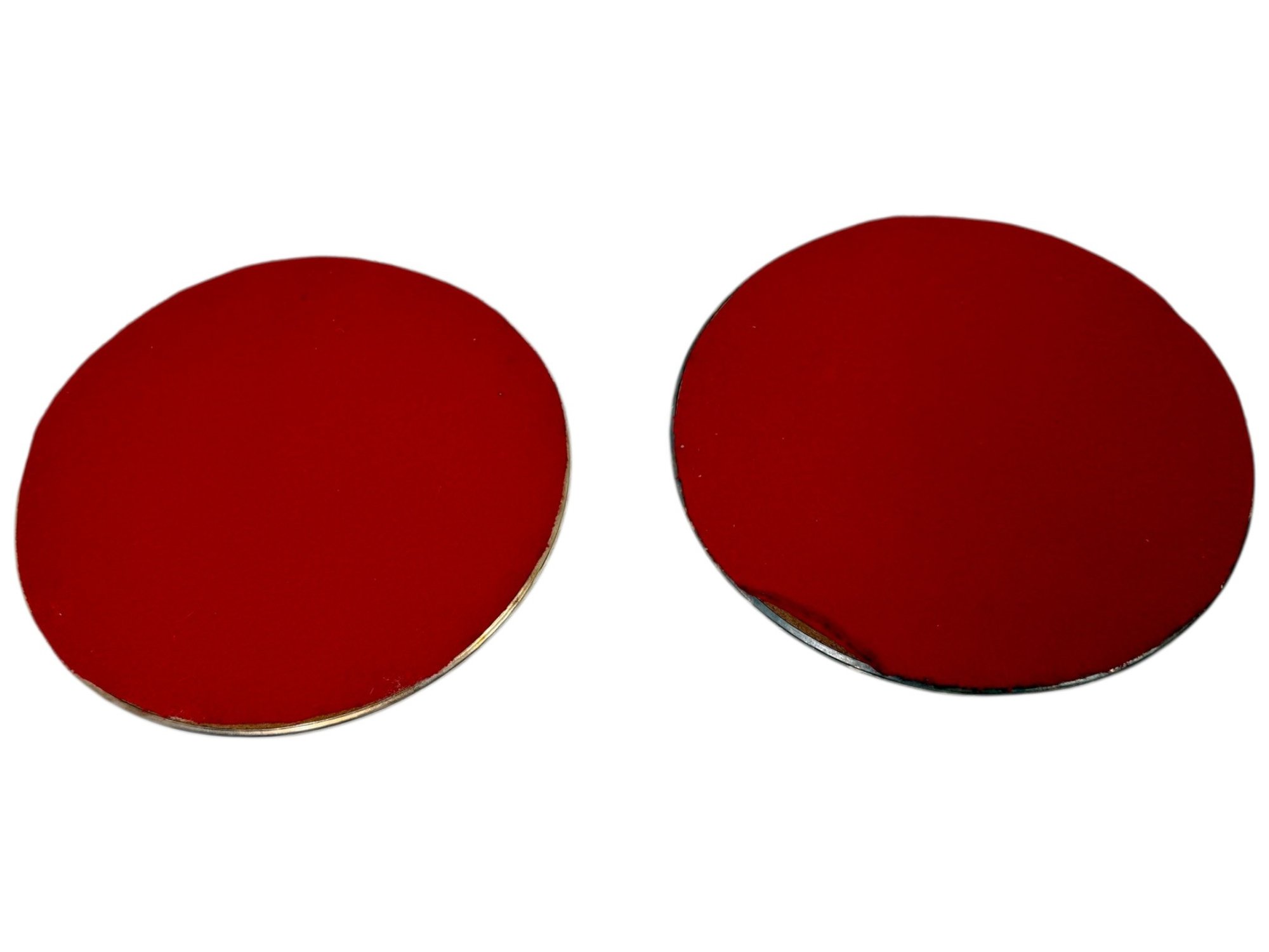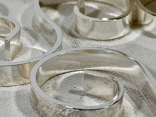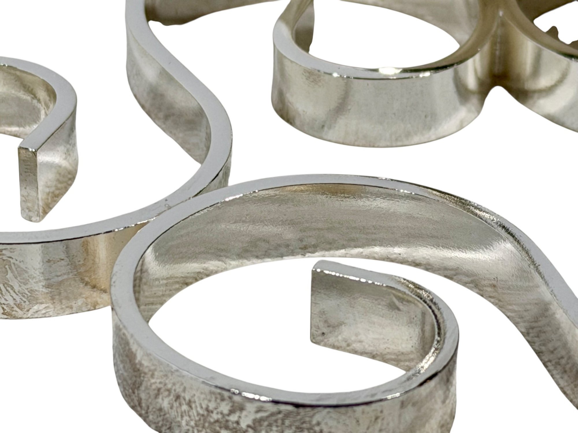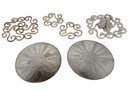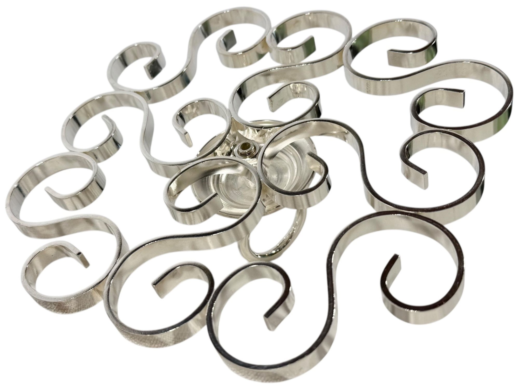 The ethed floral and filigree design ones are round and measure 8 3/4" in diameter. Larger scroll is 8 1/2"L x 8 1/2"D.