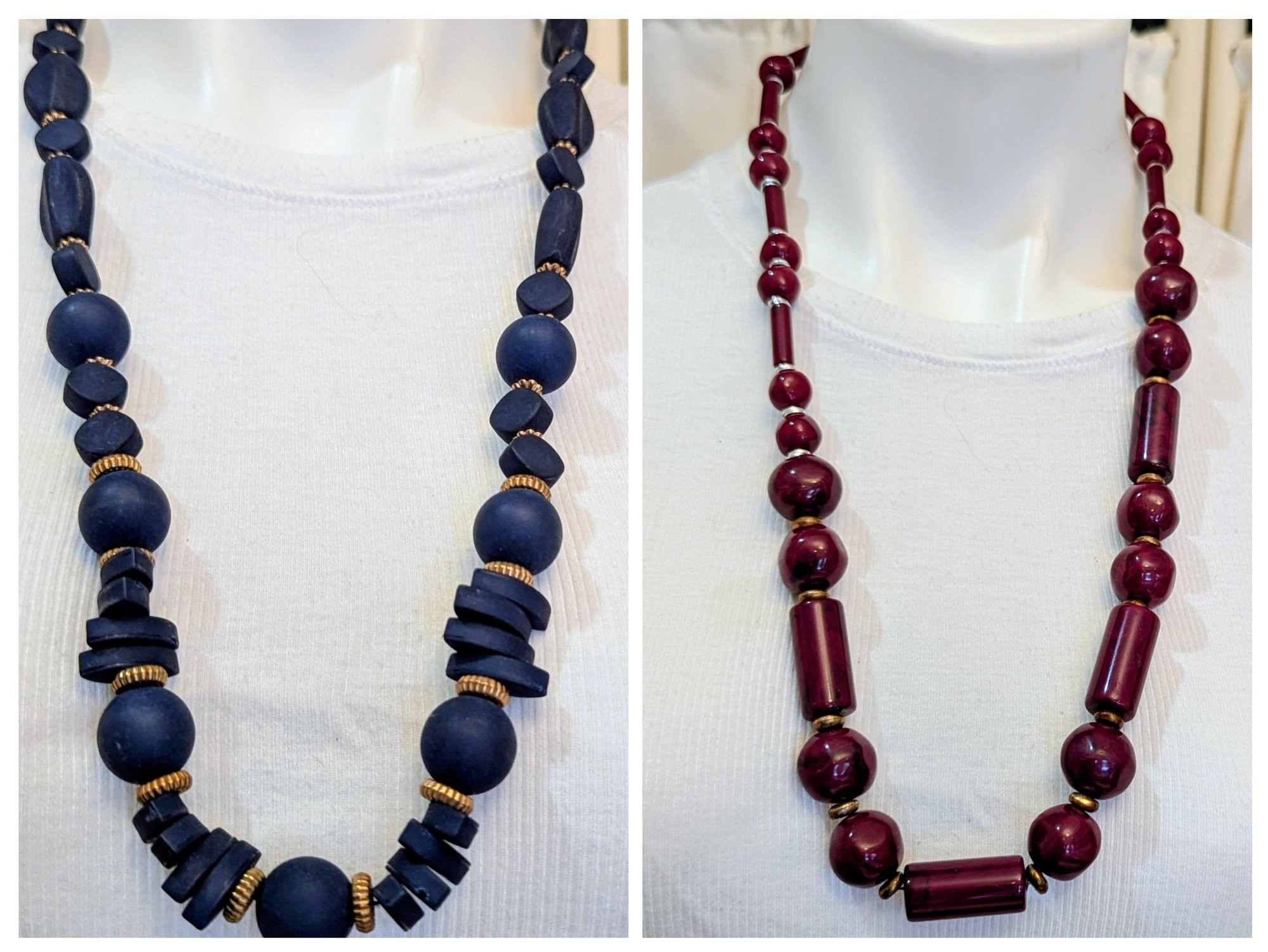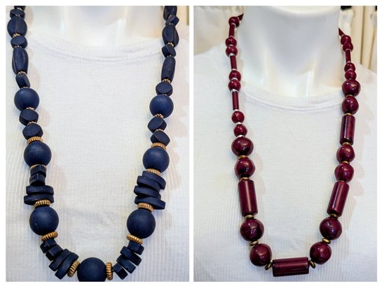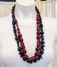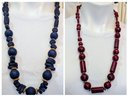 Chunky Beaded Statement Necklaces In Glossy Burgundy And Matte Blue