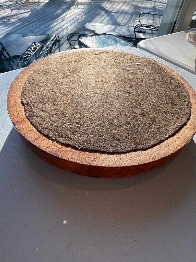 cigar and/or cigarette ashtray in wooden base, amber glass, nice condition