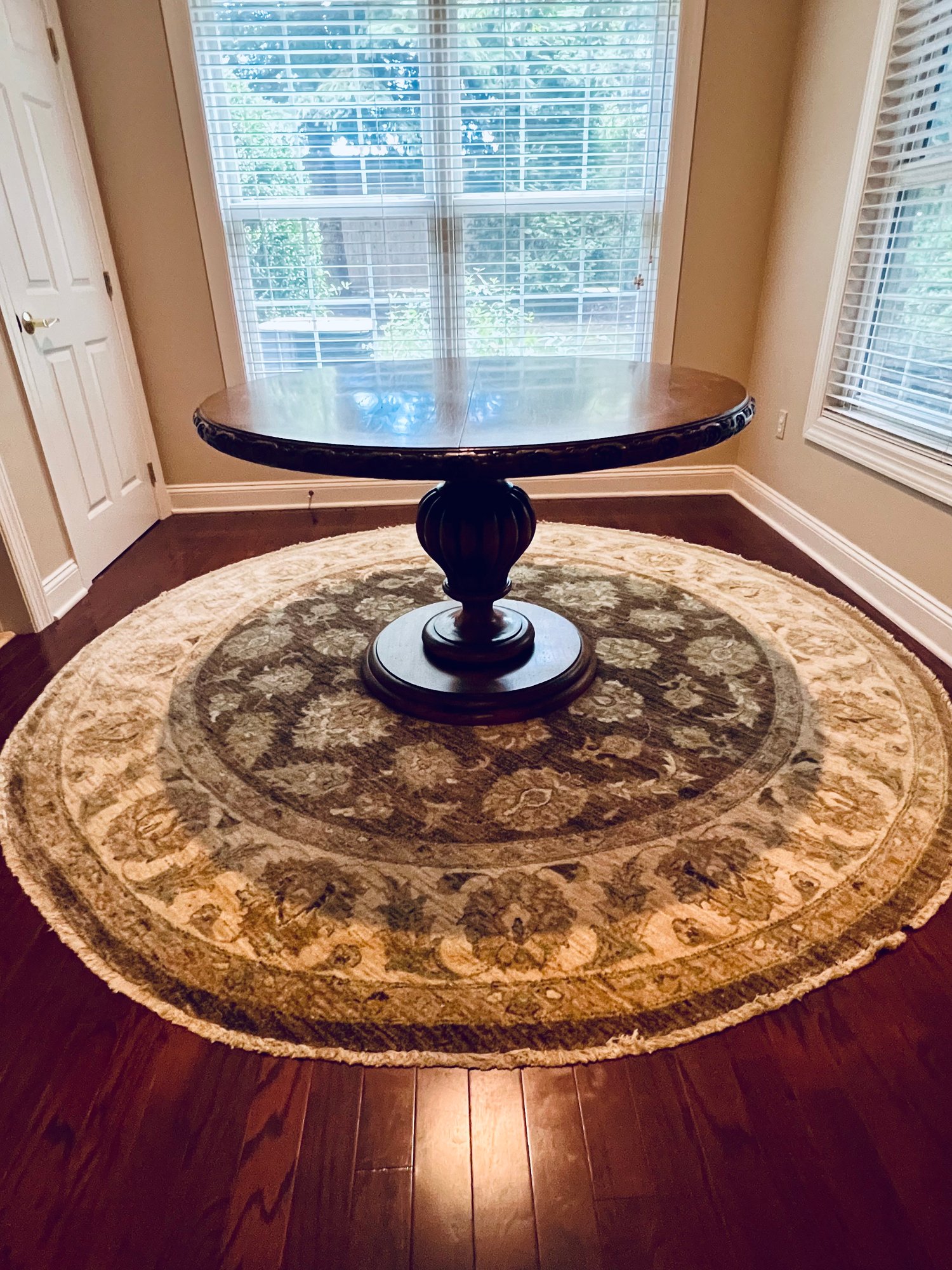 Lovely circular carpet purchased at ABC Carpet in NYC.