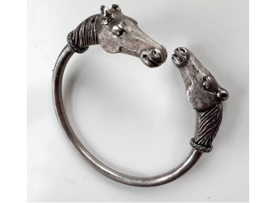 Double Horse Head Bypass Design Cuff Bracelet Nice Quality Silver Tone