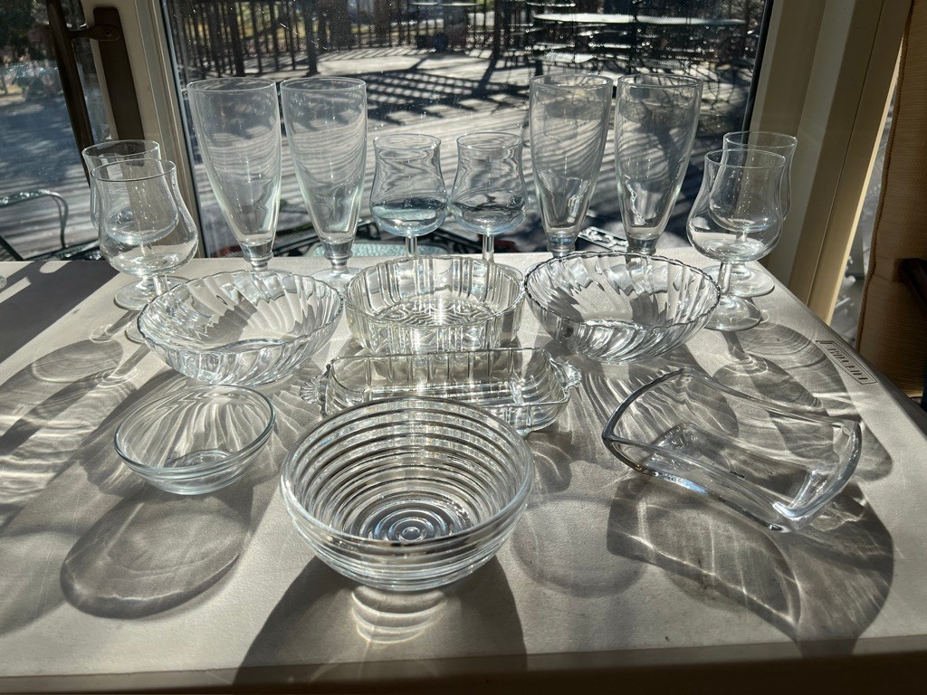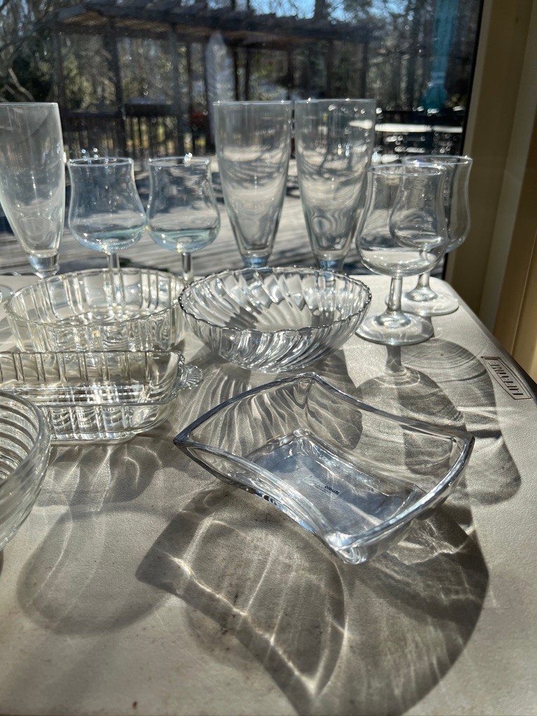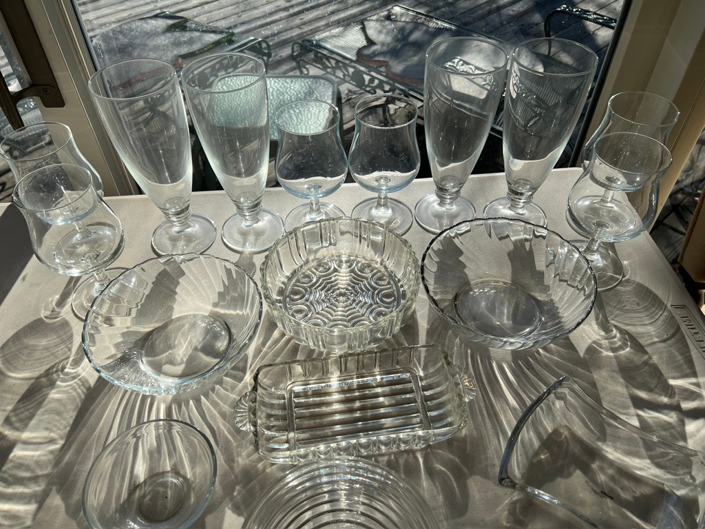 Clear glass lot, multiple sizes and uses, with an array of uses, very good condition.