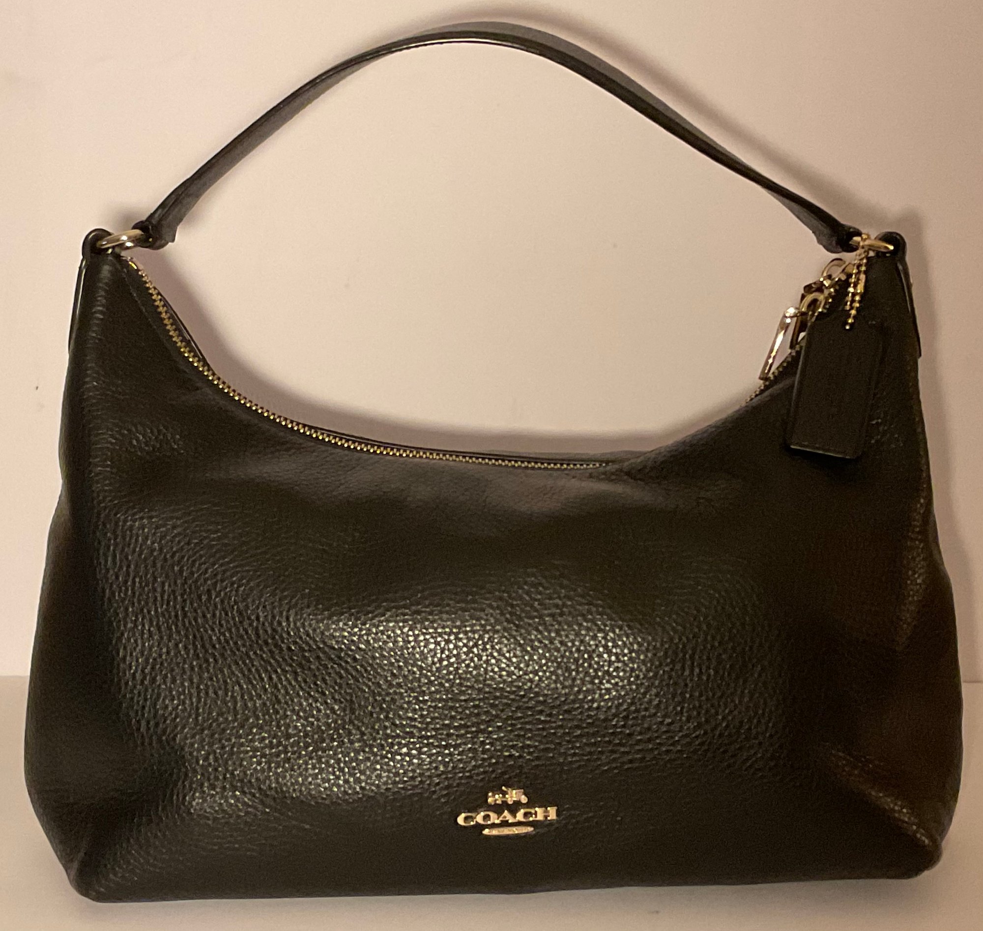 Coach Black Pebbled Leather Hobo Handbag, Adjustable, Detachable Strap.