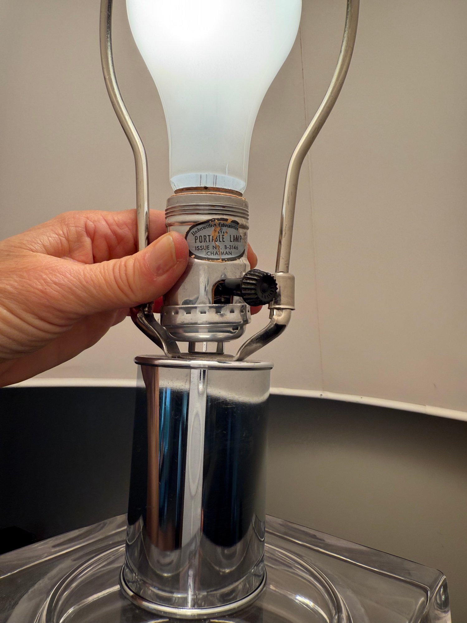 Condition Please note bulb socket is lil loose, still functioning well & lamp needs an interior wipe down inside the glass