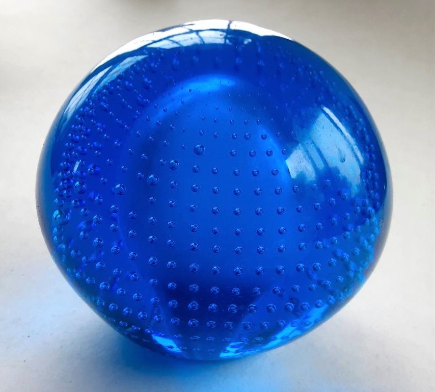 Beautiful Cobalt Blue Art Glass Concentric Circle Controlled Bubble Paperweight
