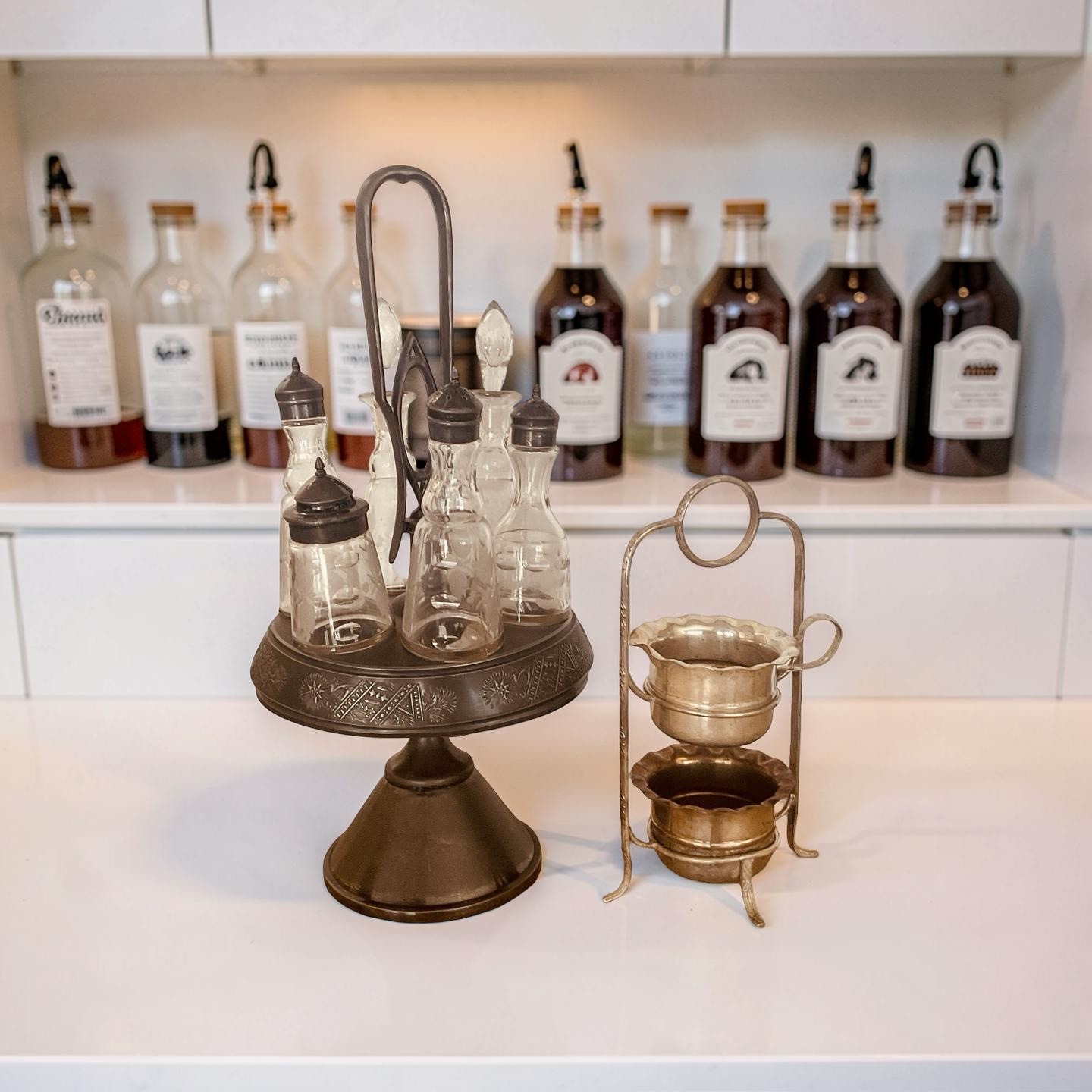 Coffee Bar Accessories Espresso Station Decor. Vintage Syrups Caddy. Spice Cruet Set