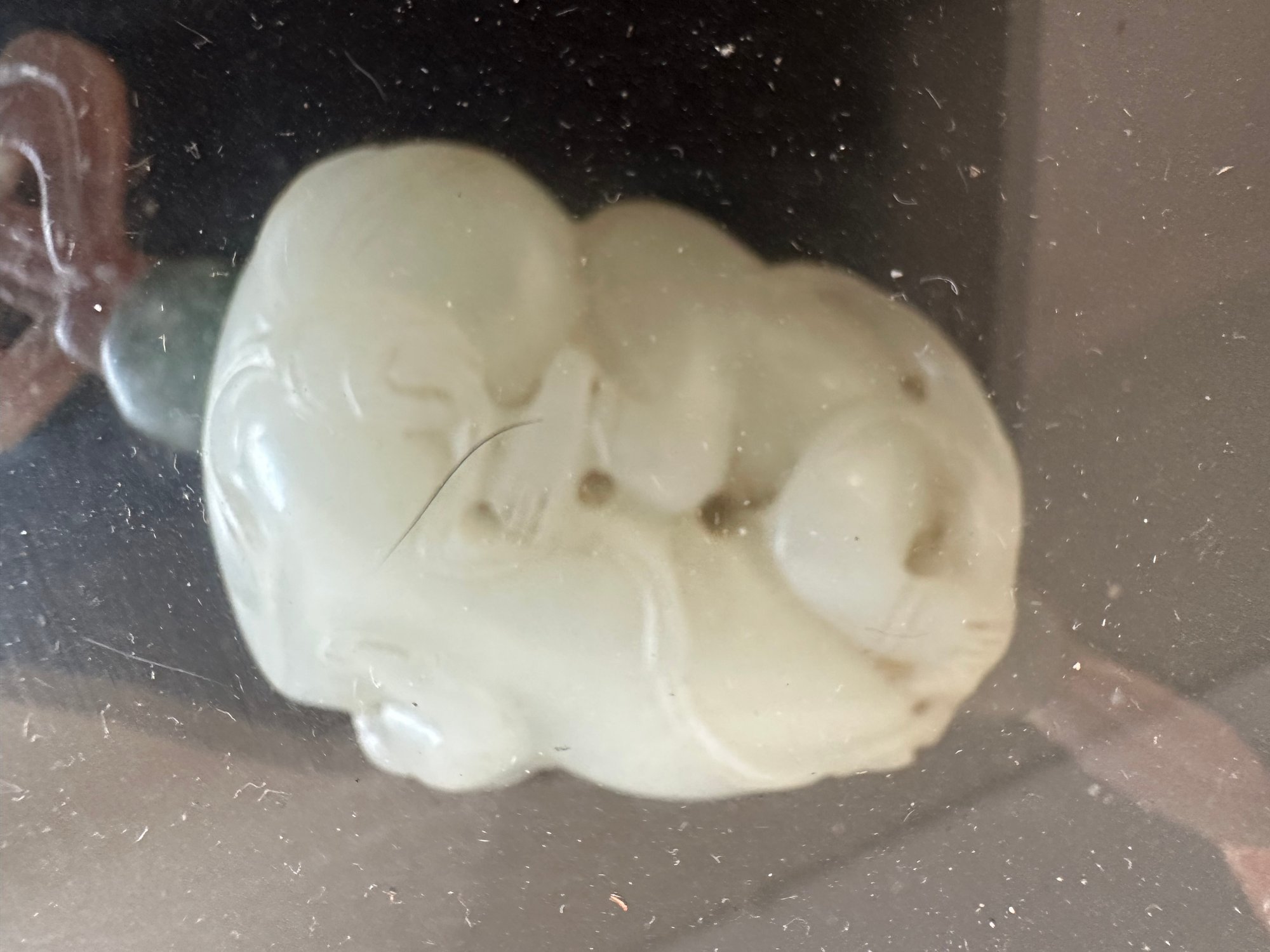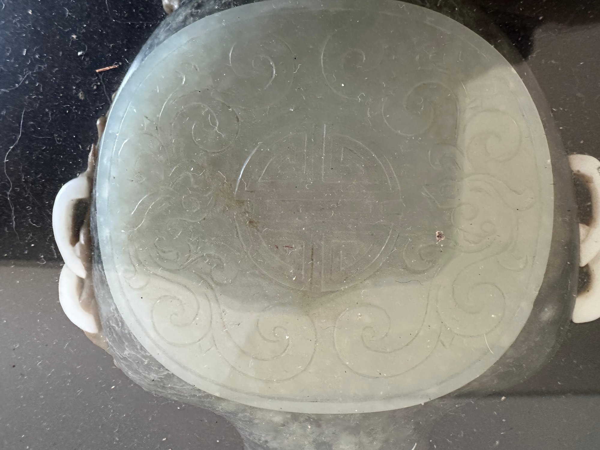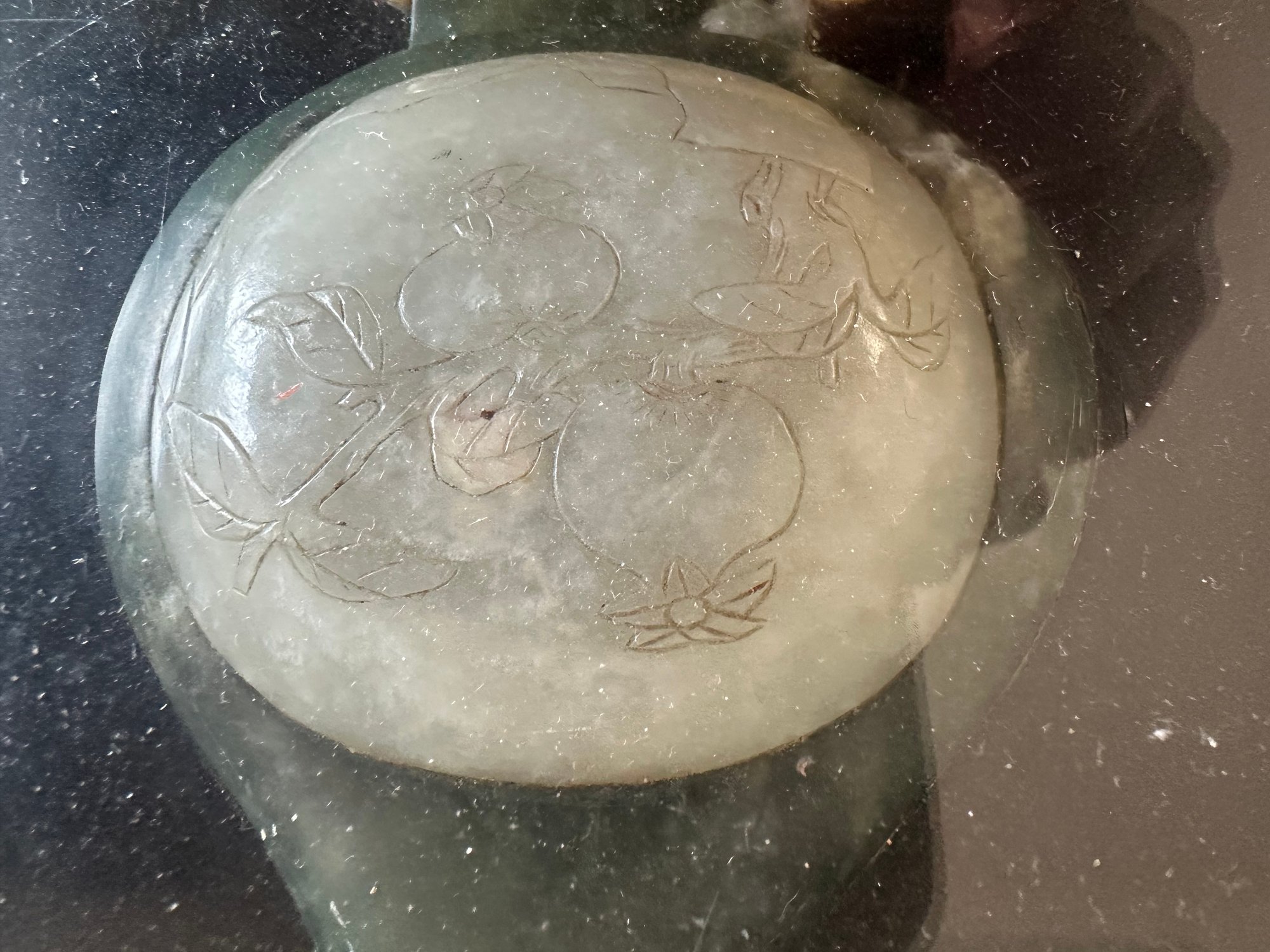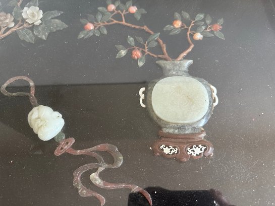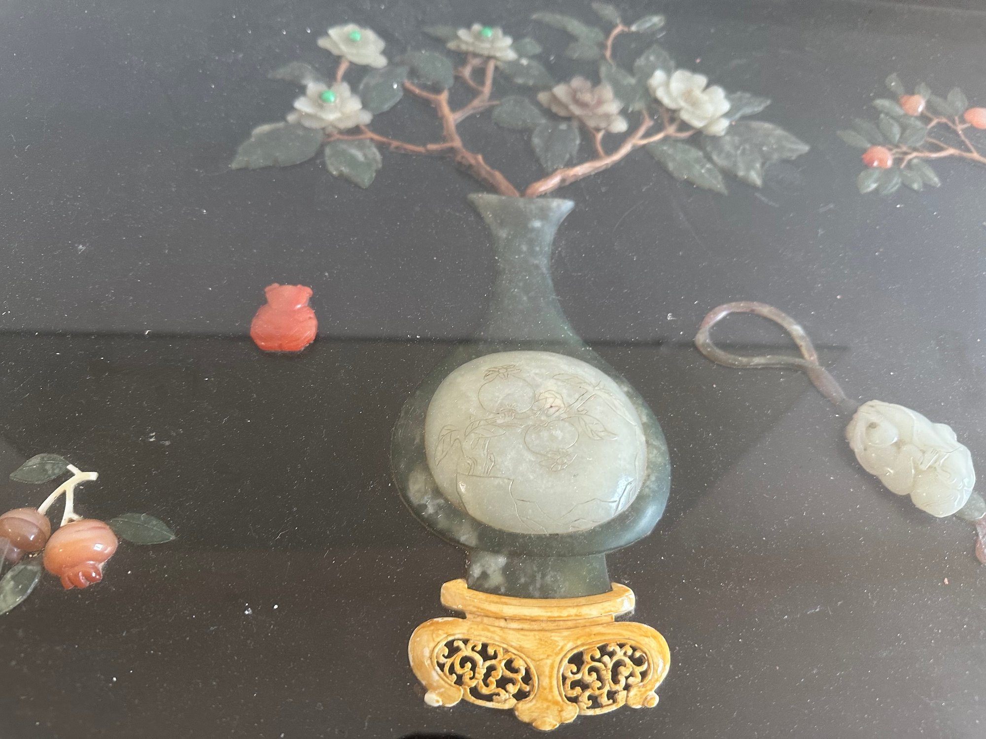 the jade and/or hardstone decorations are under glass top.
