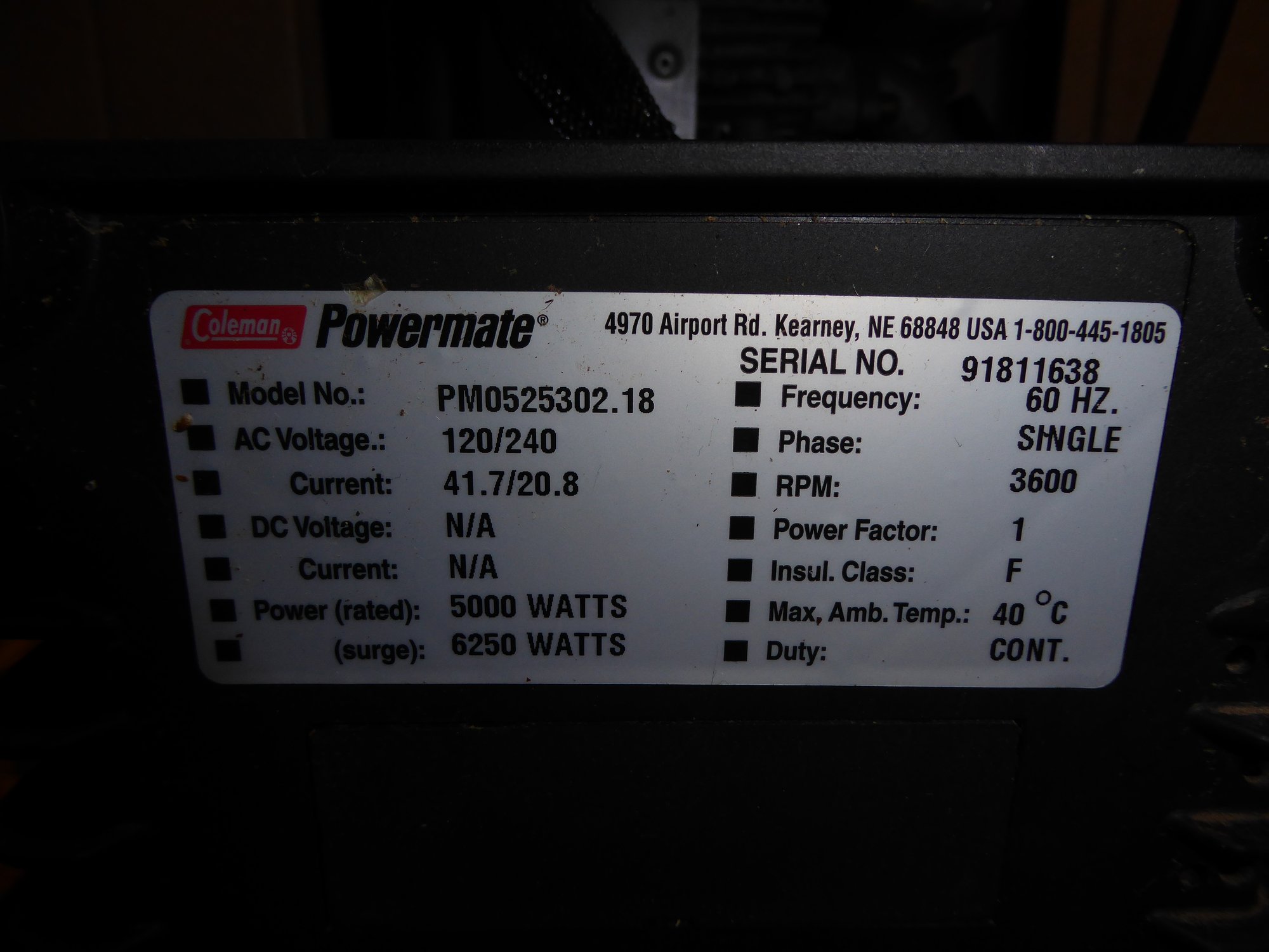 Coleman Powermate 6250 Gas Generator
