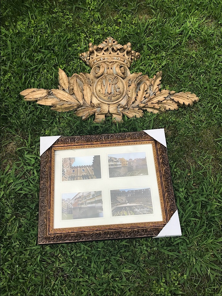 Picture frame and gold decor.