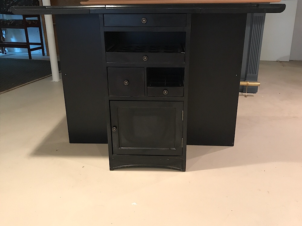 Deceivingly heavy bar. Perfect for small apartment. 24X18X41.5 and 17.5 panel on each side.