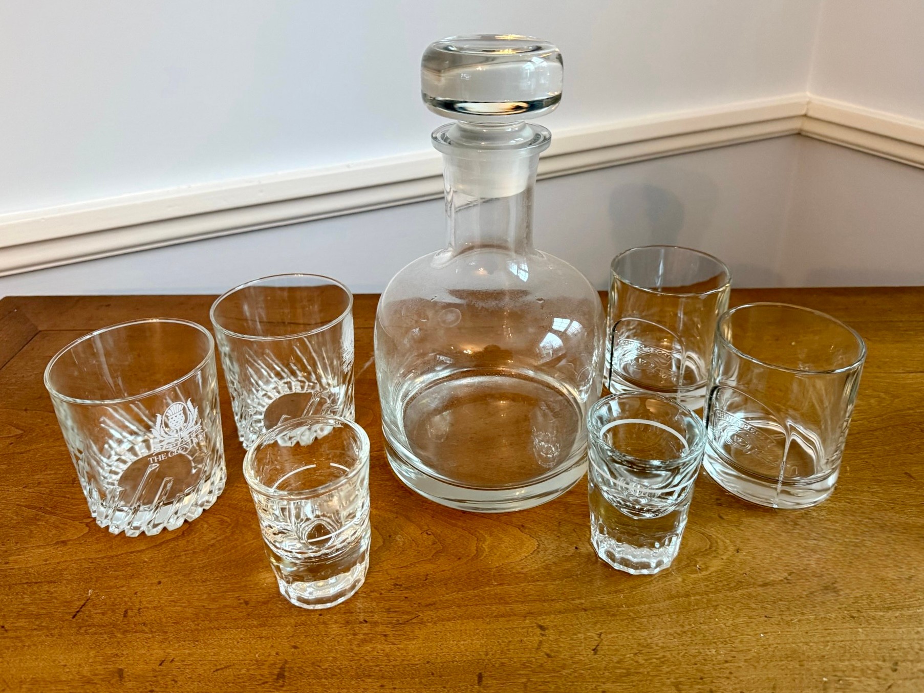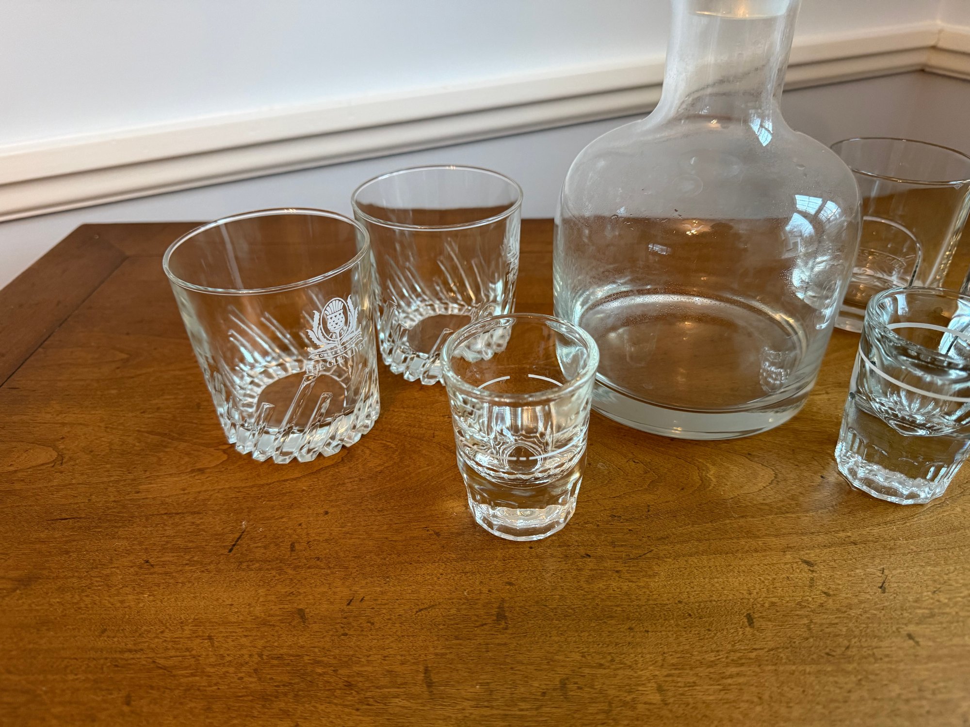 Two shot, 4 lowball or scotch glasses - no chips or cracks.