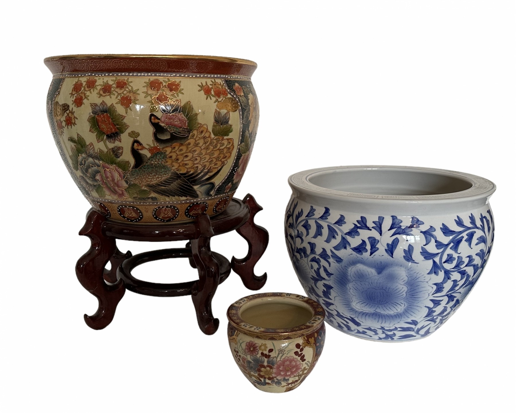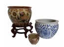 Collection Of 3 Chinese Decorated Planters one appears to have a hairline, 9 1/2 tall to 3 1/2"tall