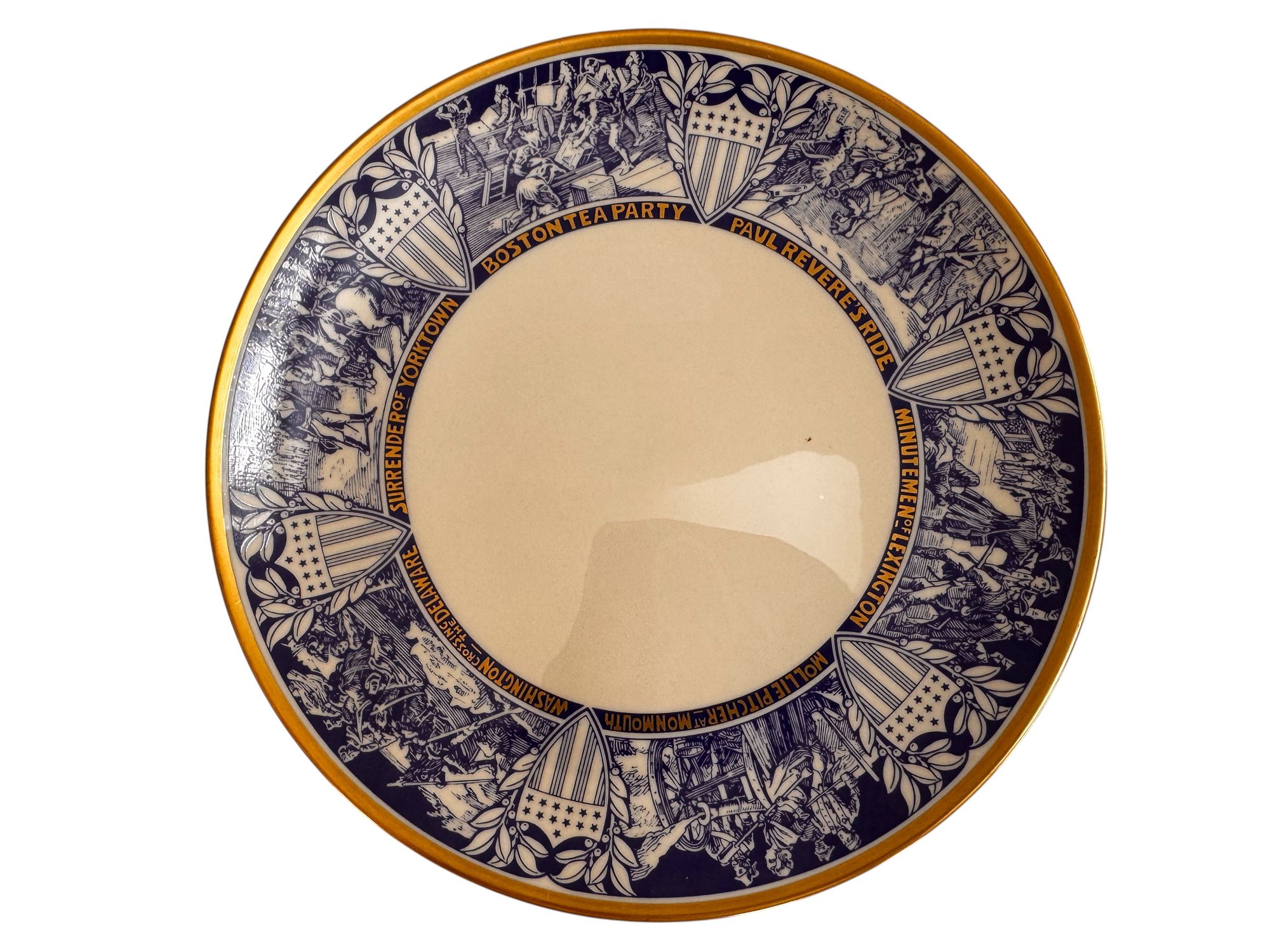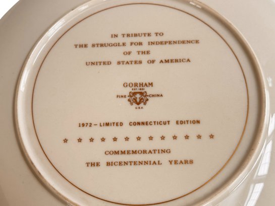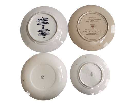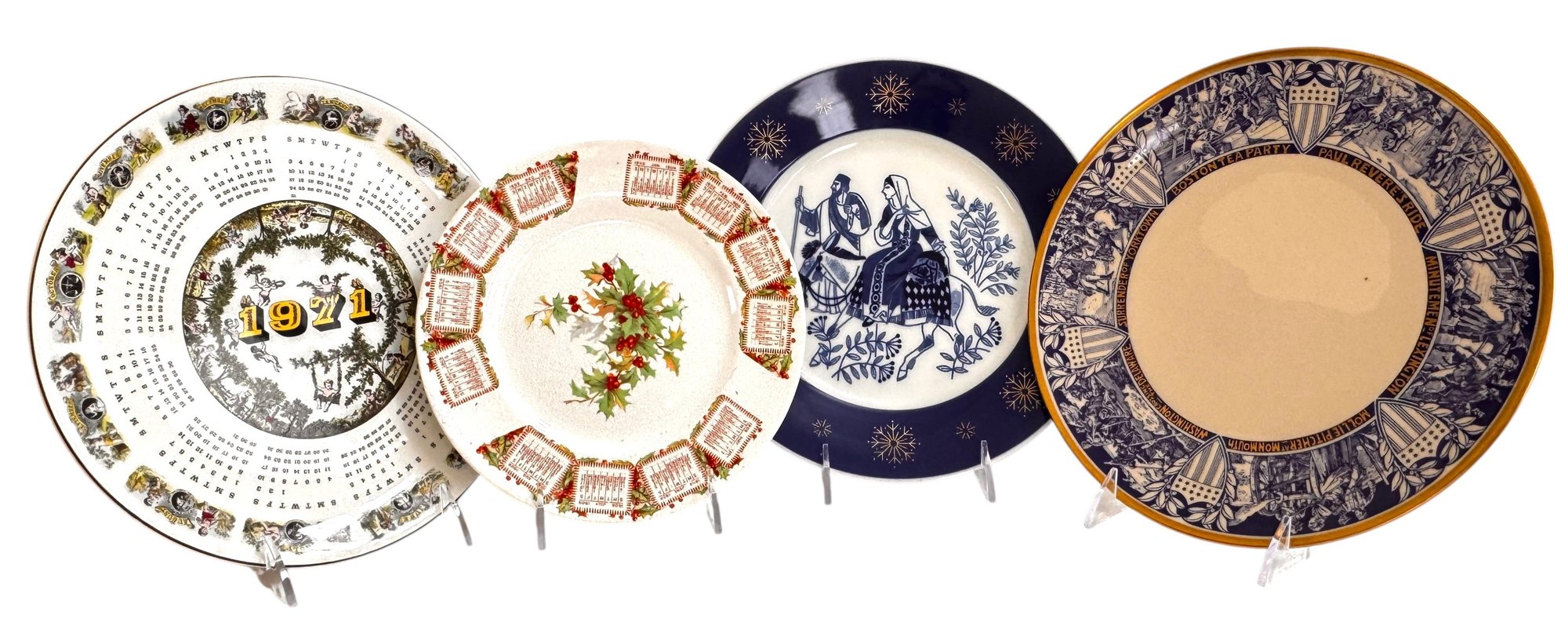 A charming collection of four decorative and commemorative plates, including holiday and Bicentennial examples from noted makers.1909 Calendar plate: 8 5/8"