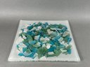Collection Of Pretty Sea Glass On a glass plate. The plate is 12x12”