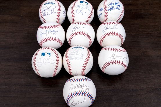 A fantastic collection of ten baseballs with autographed signatures on each. Including Dusty Baker autographs amongst others.