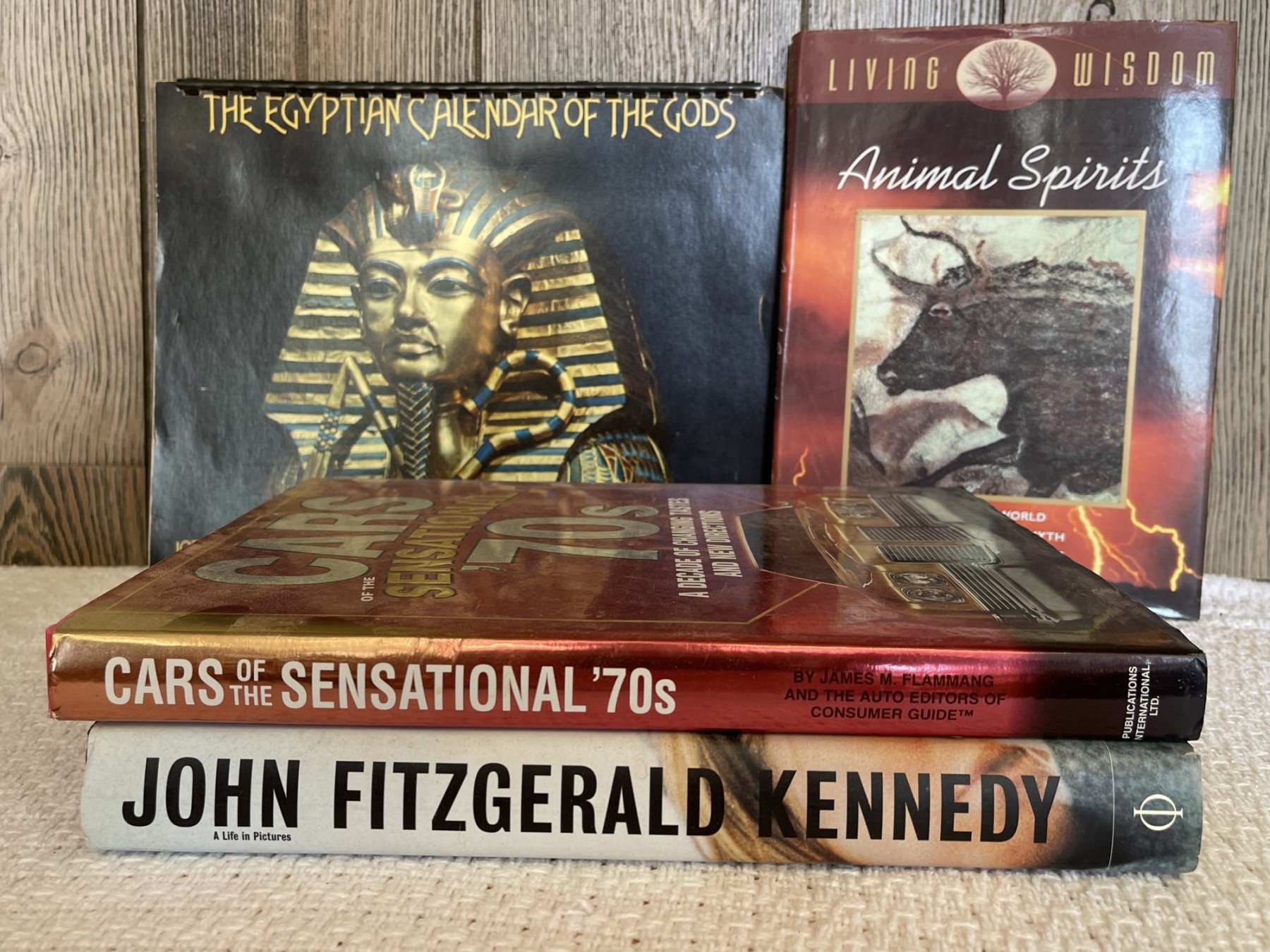Including JFK, 70s Cars, Egyptian Calendar of Gods, and Living Wisdom Animal Spirits.