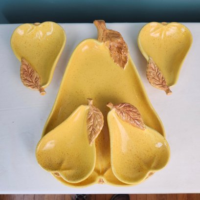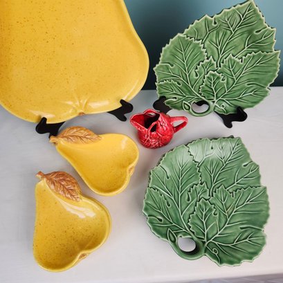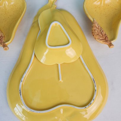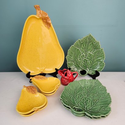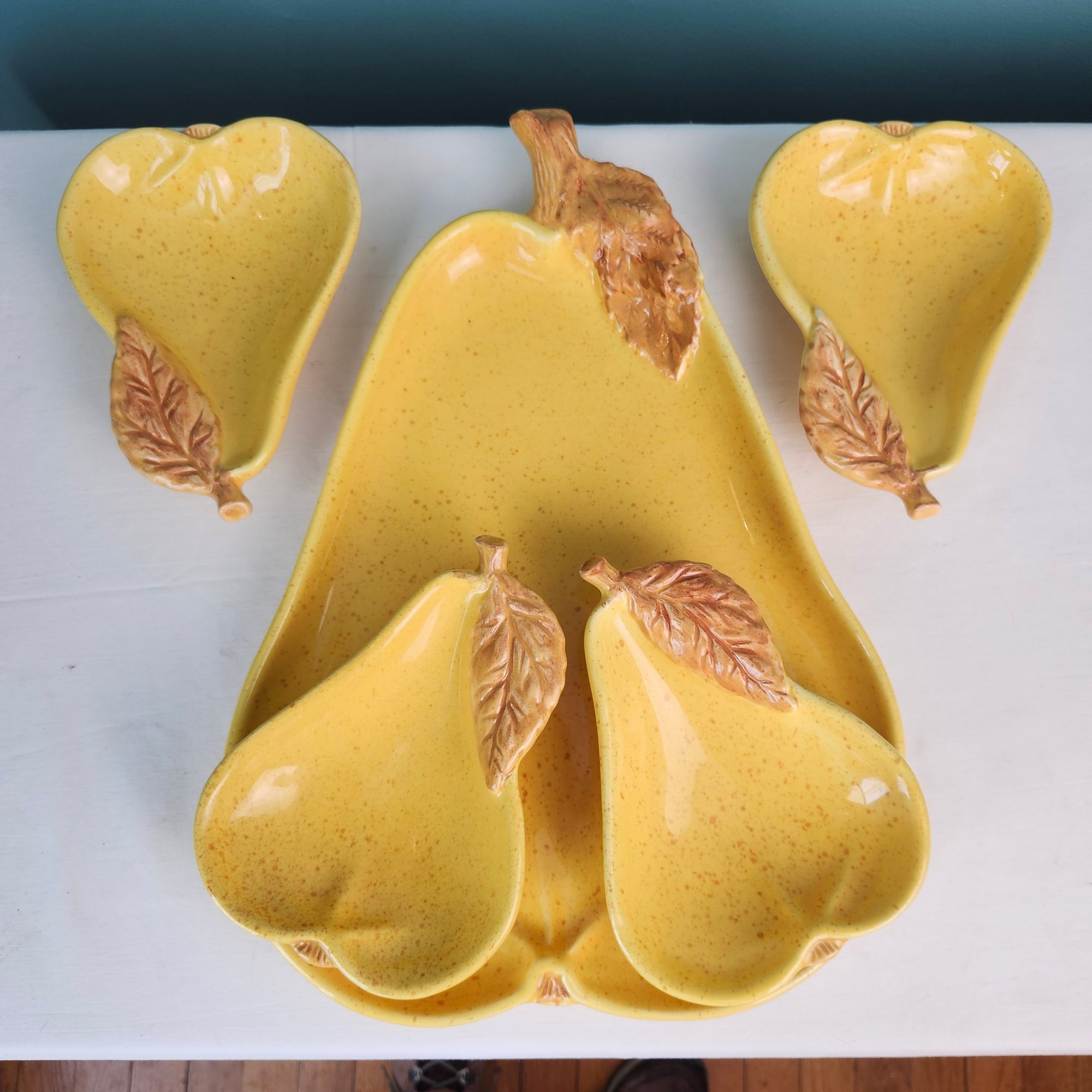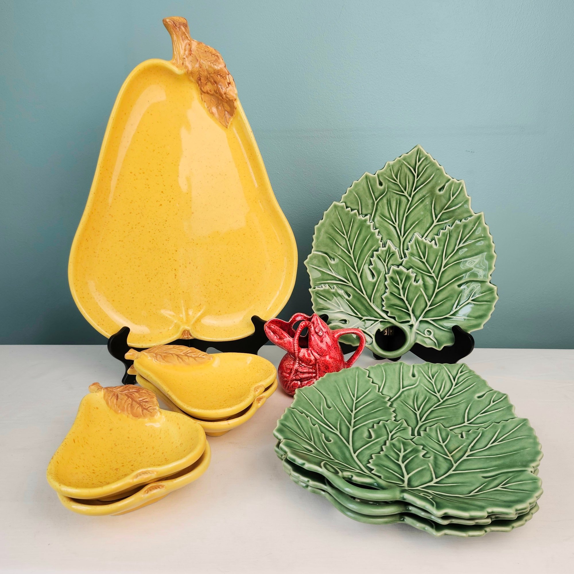 Pear shaped berry set, leaf glassware set, and lobster pitcher. measurements of pear platter.