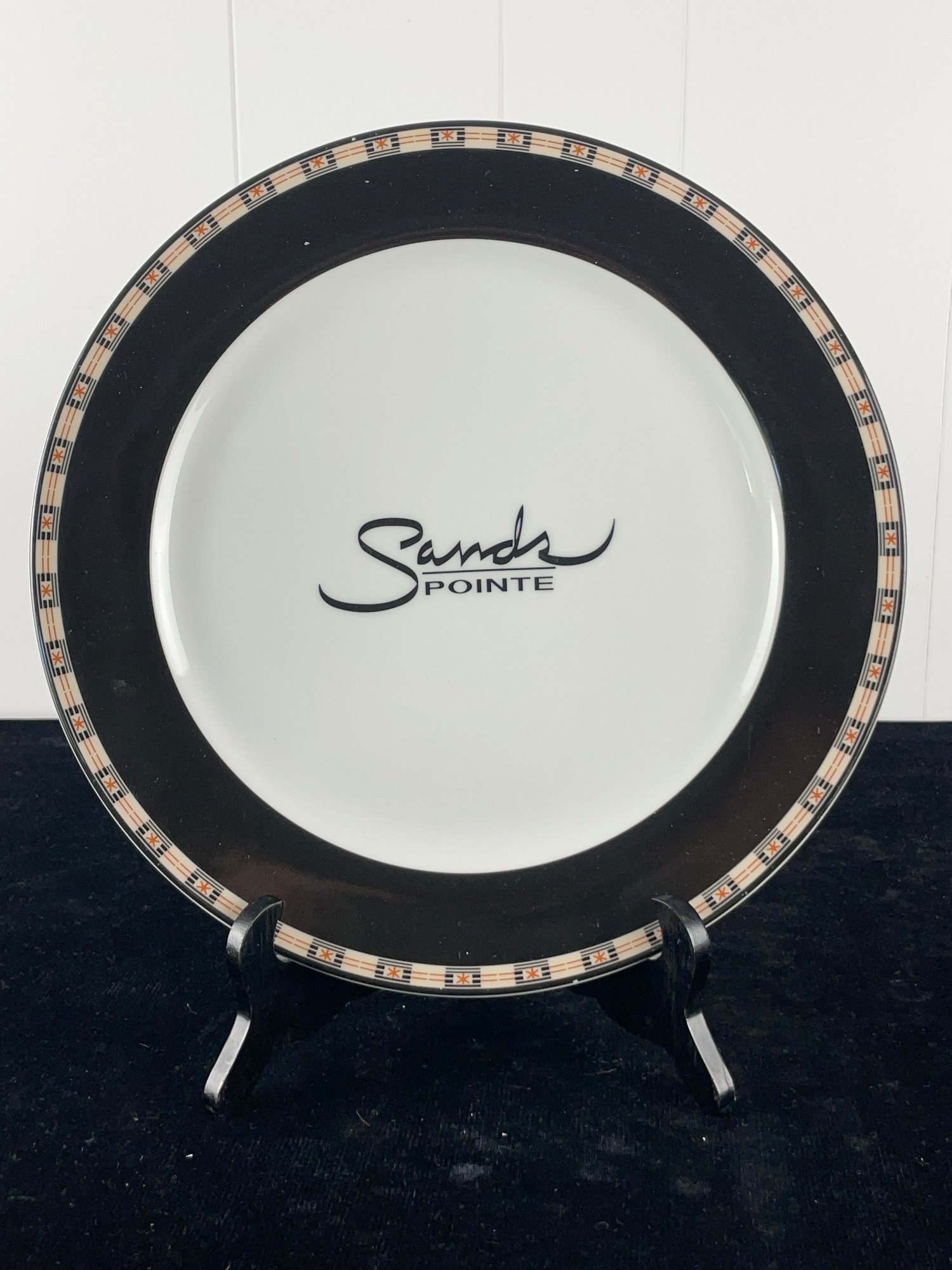 White base, black colored rim. Pattern designed edges. No damages noticed in images. See photos for more conditions and sizing.