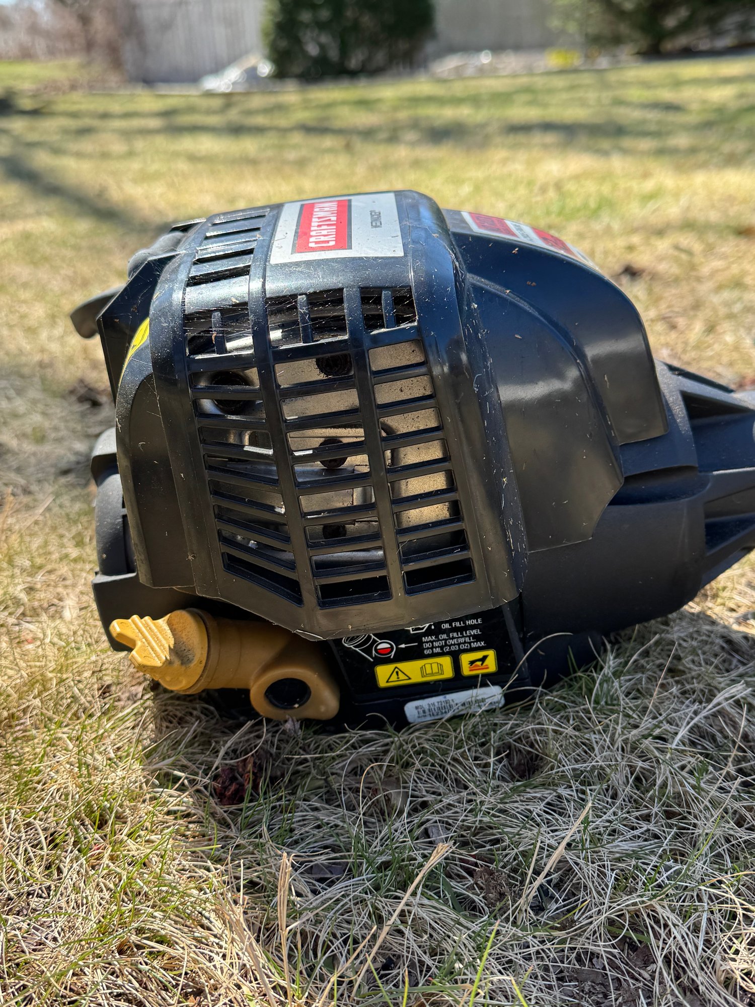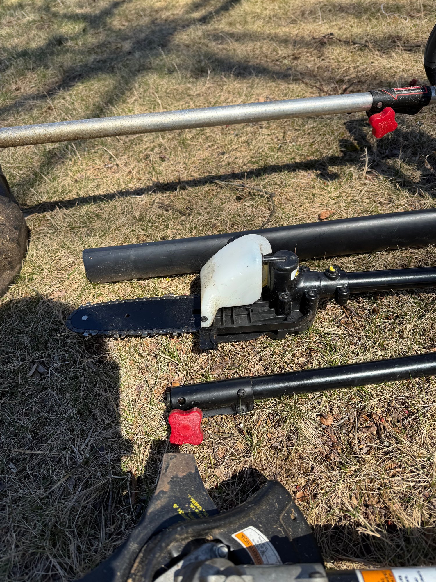 We have not started the weed whacker because it has been drained of gas for storage but did run before it was stored. Some attachments include a pole saw, hedge trimmer, extension and brush cutter. Some attachments appear to be used very minimally.