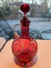 Material: The item is made of cranberry glass, a type of ruby-red glass.