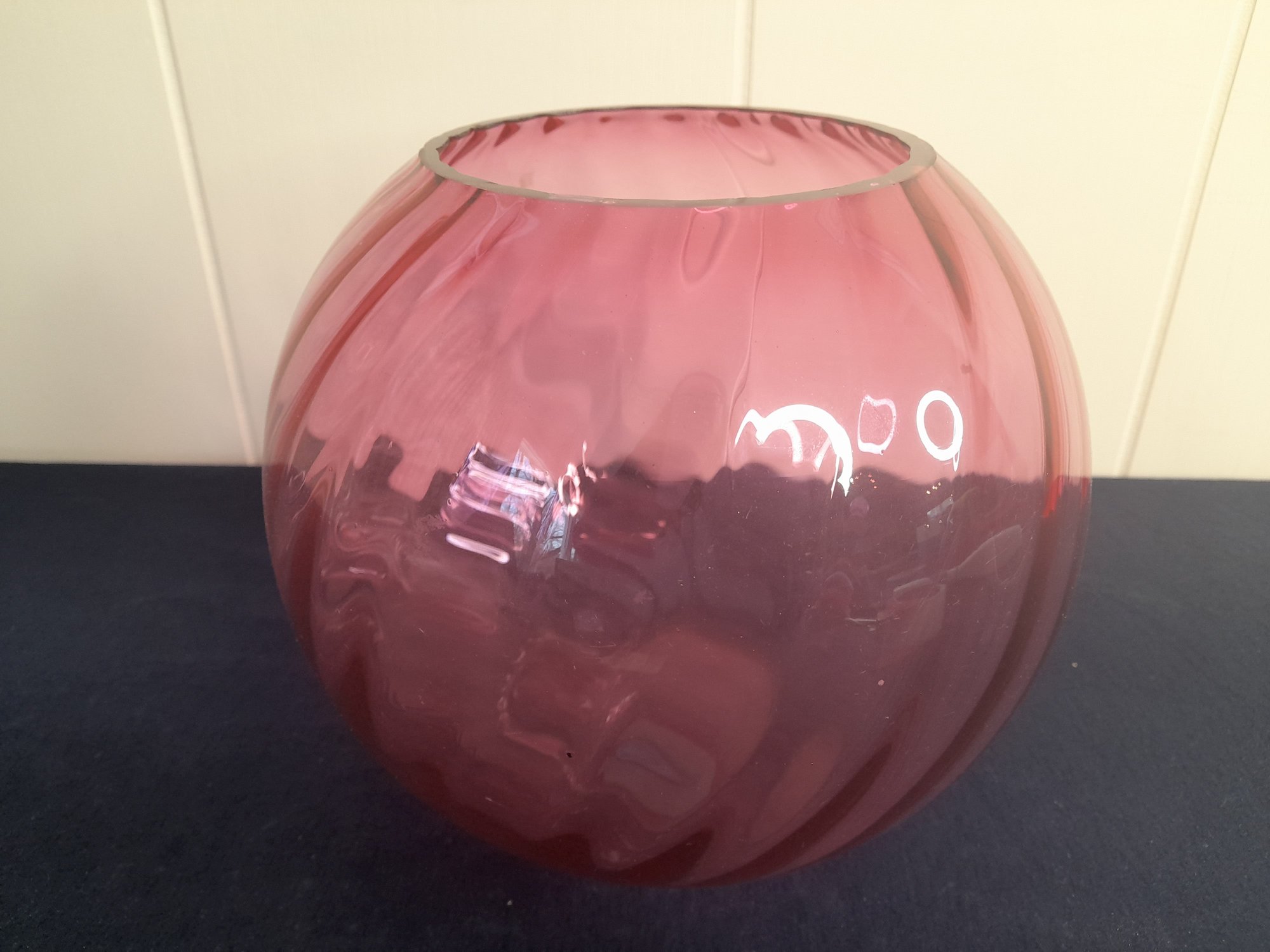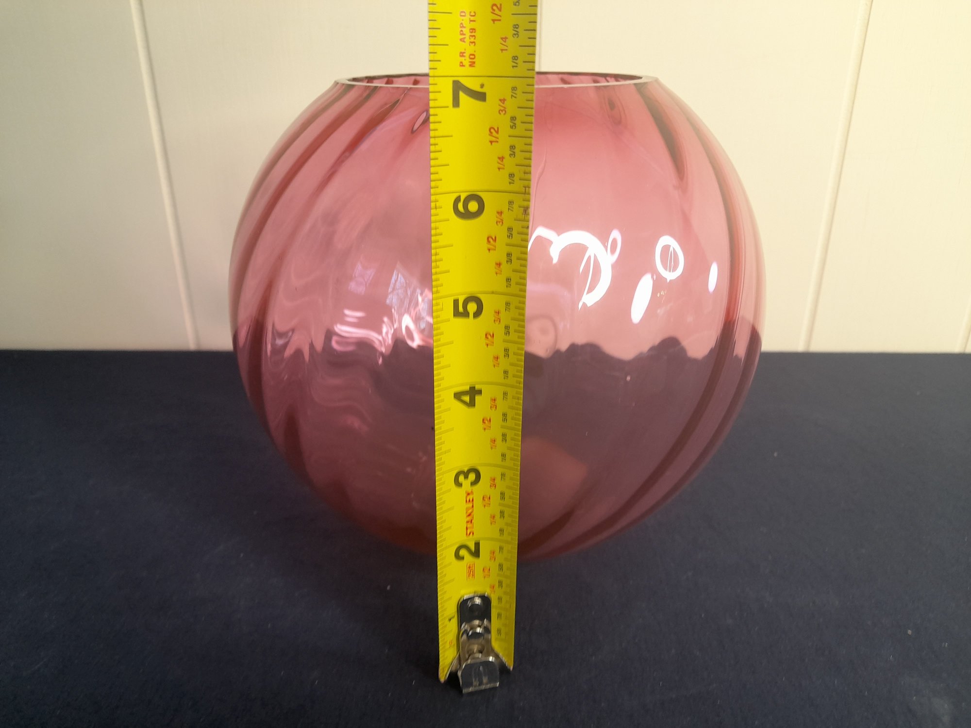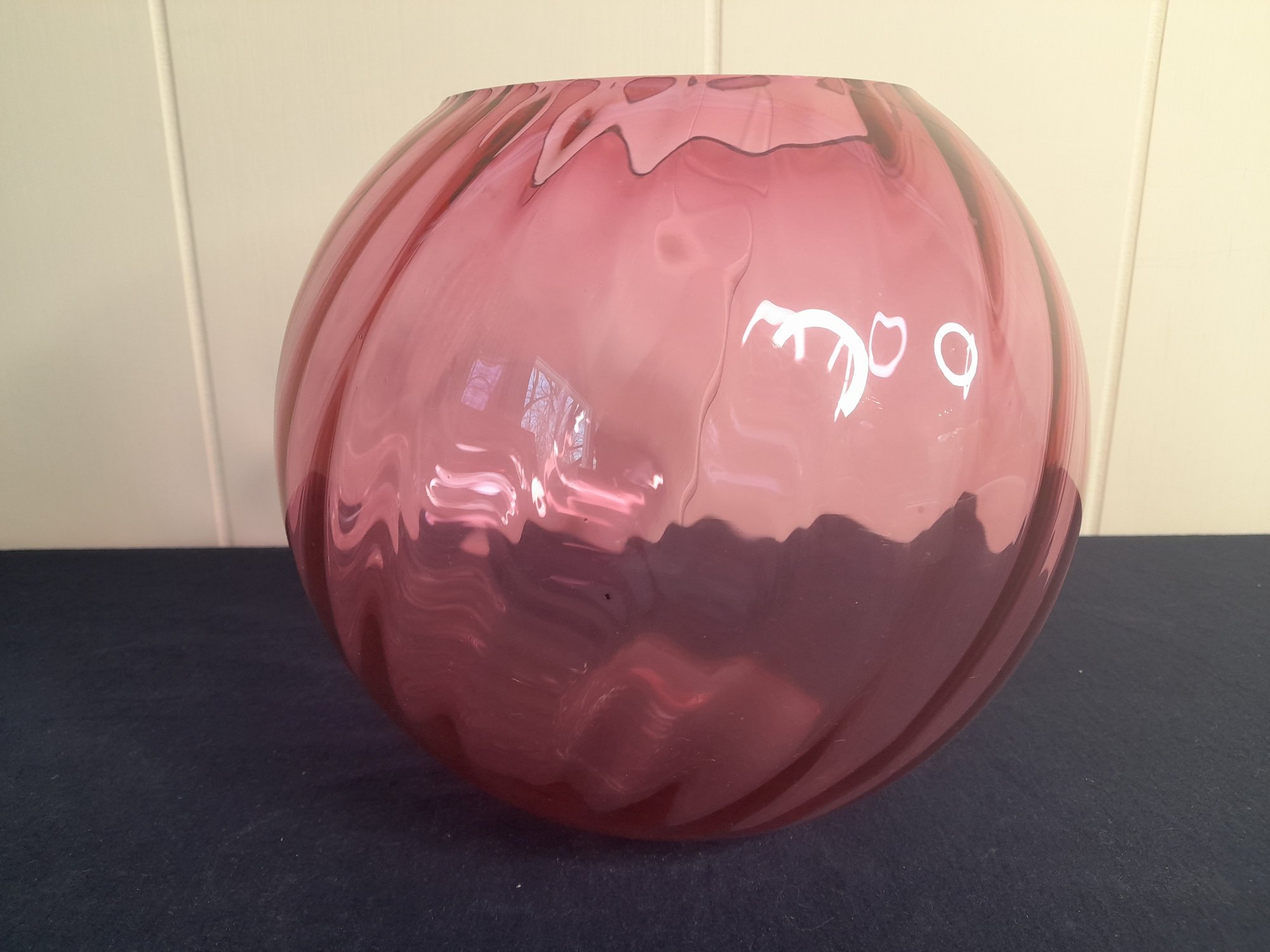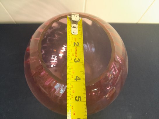 Cranberry Swirl Art Glass Vase Or Bowl