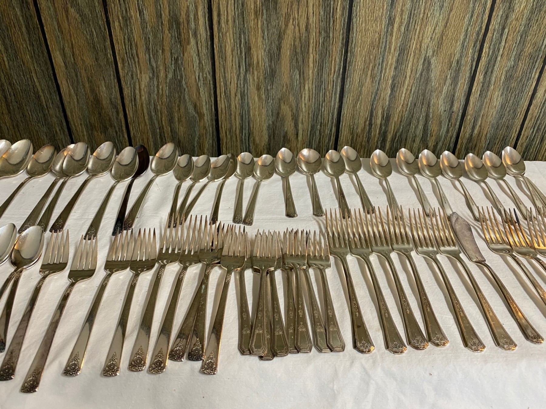 Some of the flatware is tripled plated, there are a few different styles, most are in good condition, see all photos.
