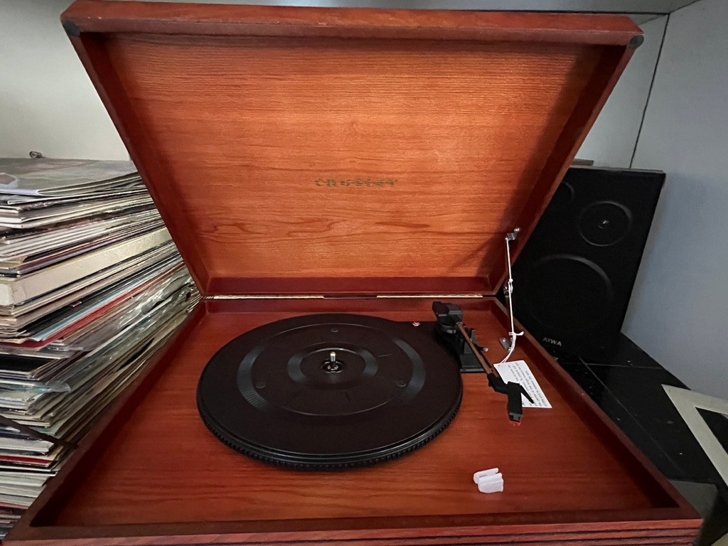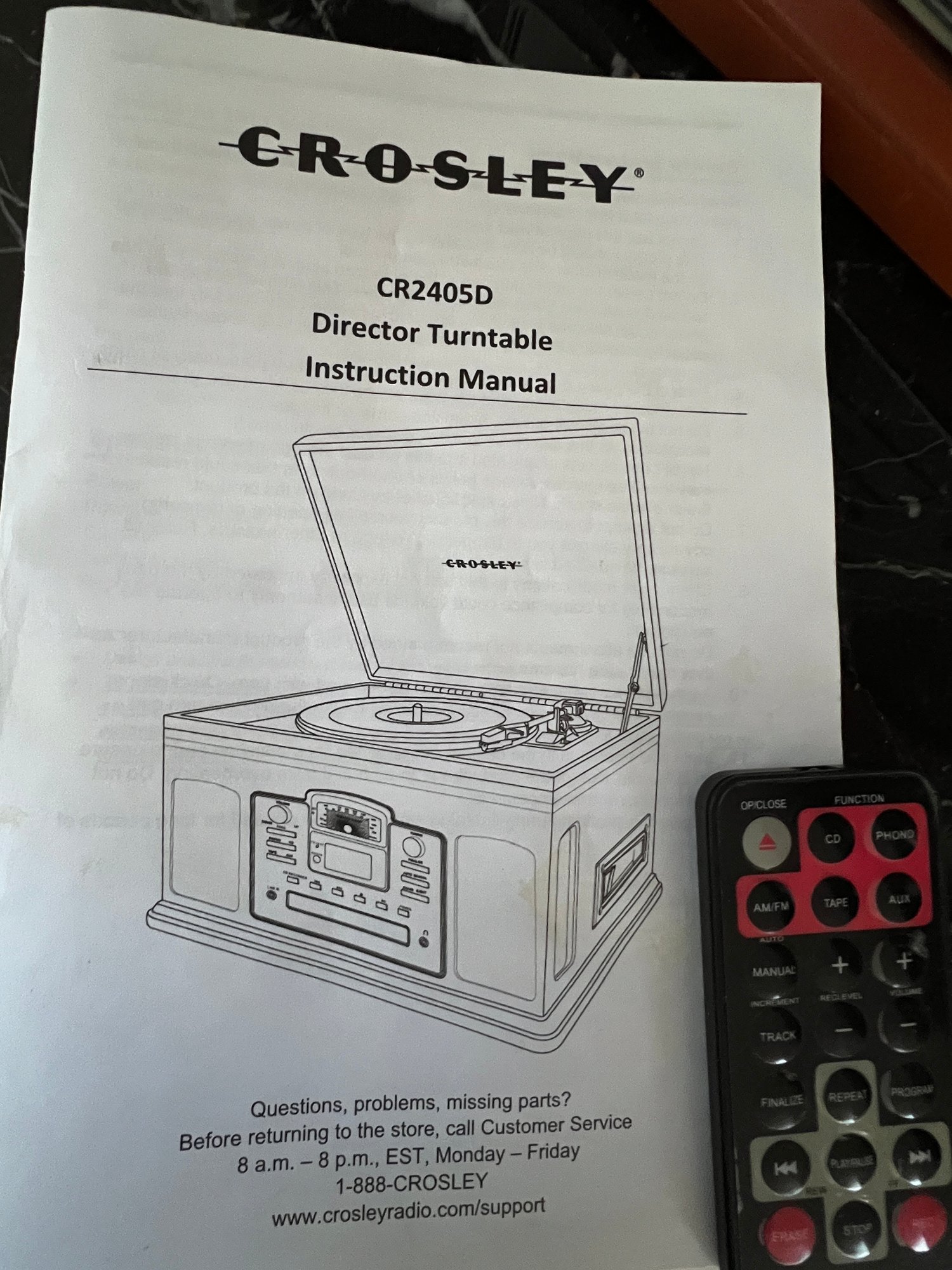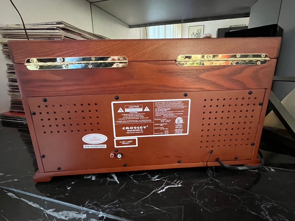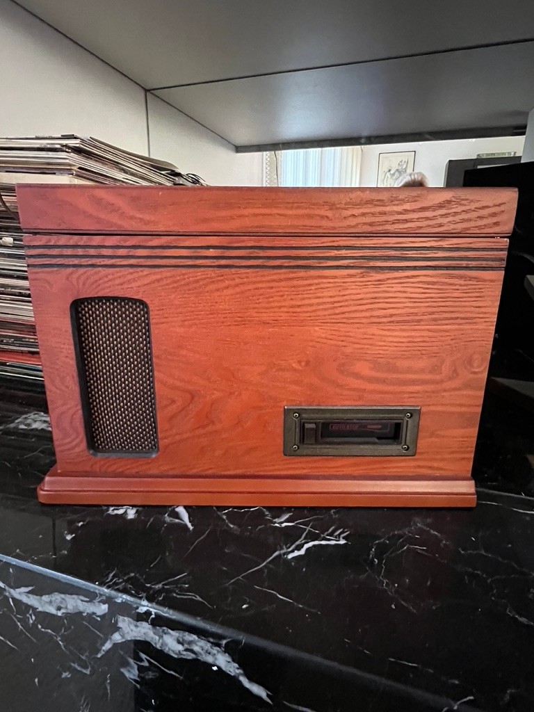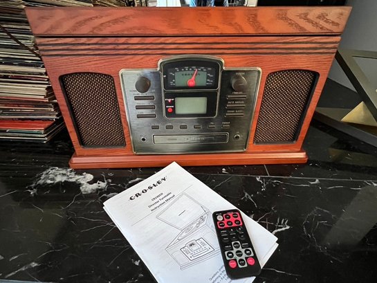 Crosley director turntable w/ remote, and radio, never used, with tags, in excellent condition. Fine woodgrain finish, old fashioned design, in a size that is useful in todays environment, lovely piece