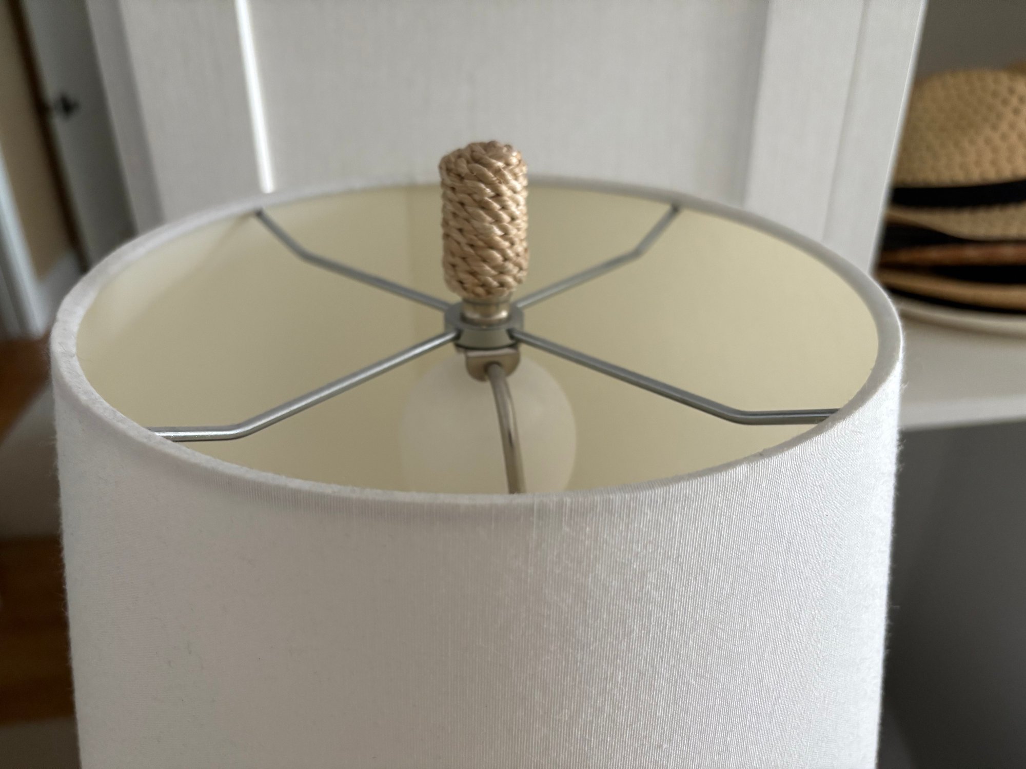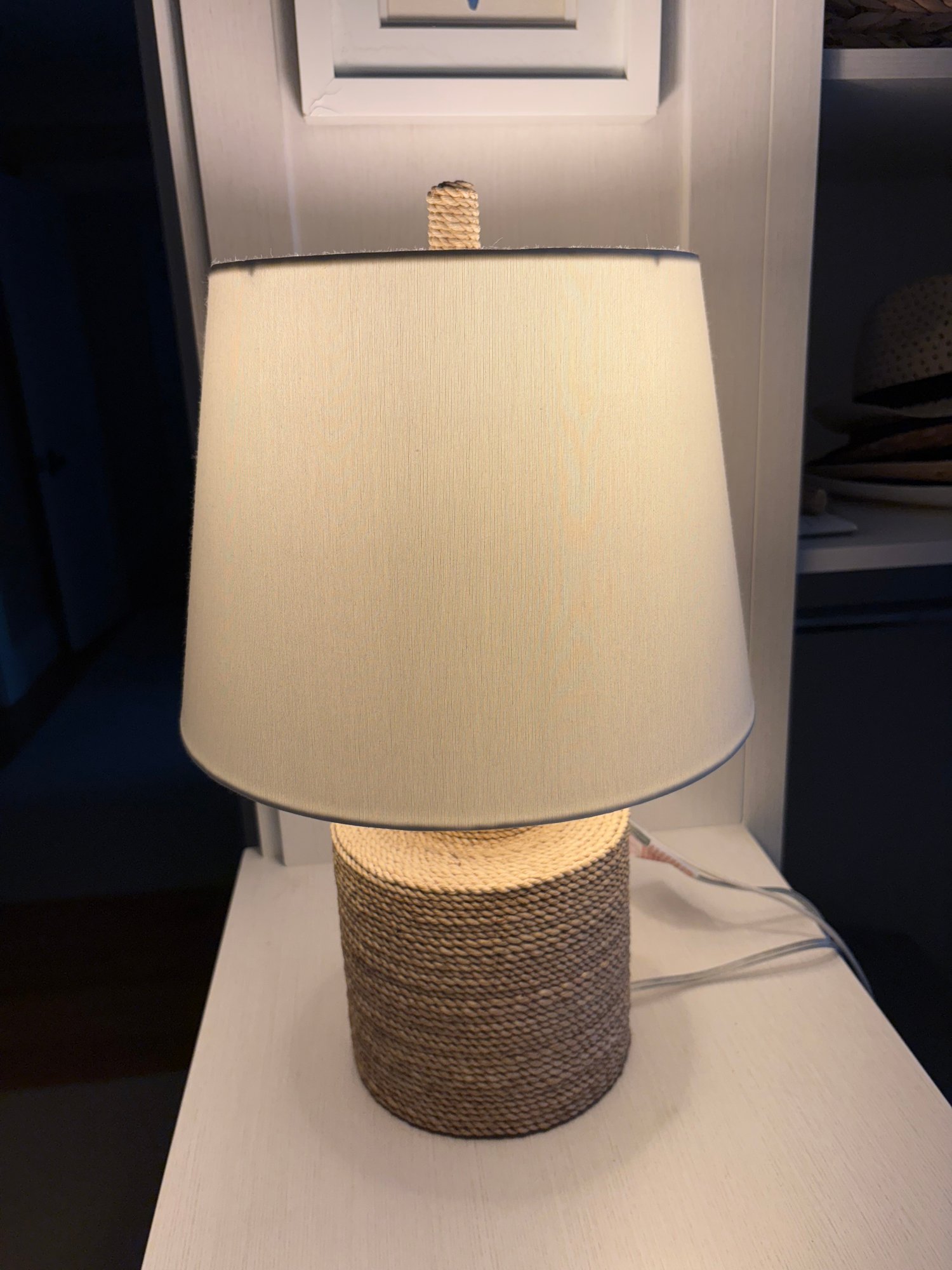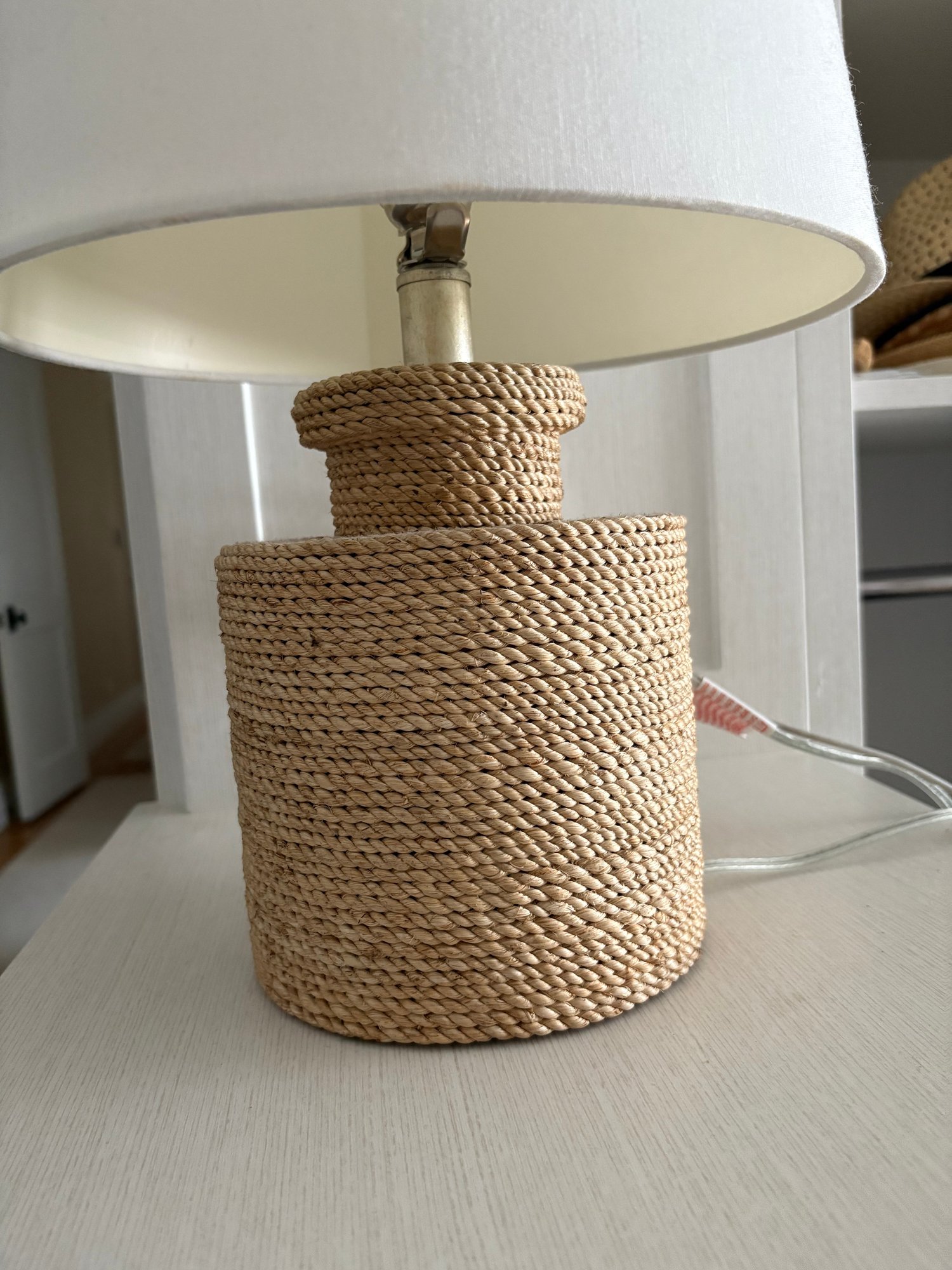 Currey & Company Harbor Table Lamp is wrapped in Abacá rope, which is complemented with natural wood and wrought iron hardware and Abaca rope wrapped finial.