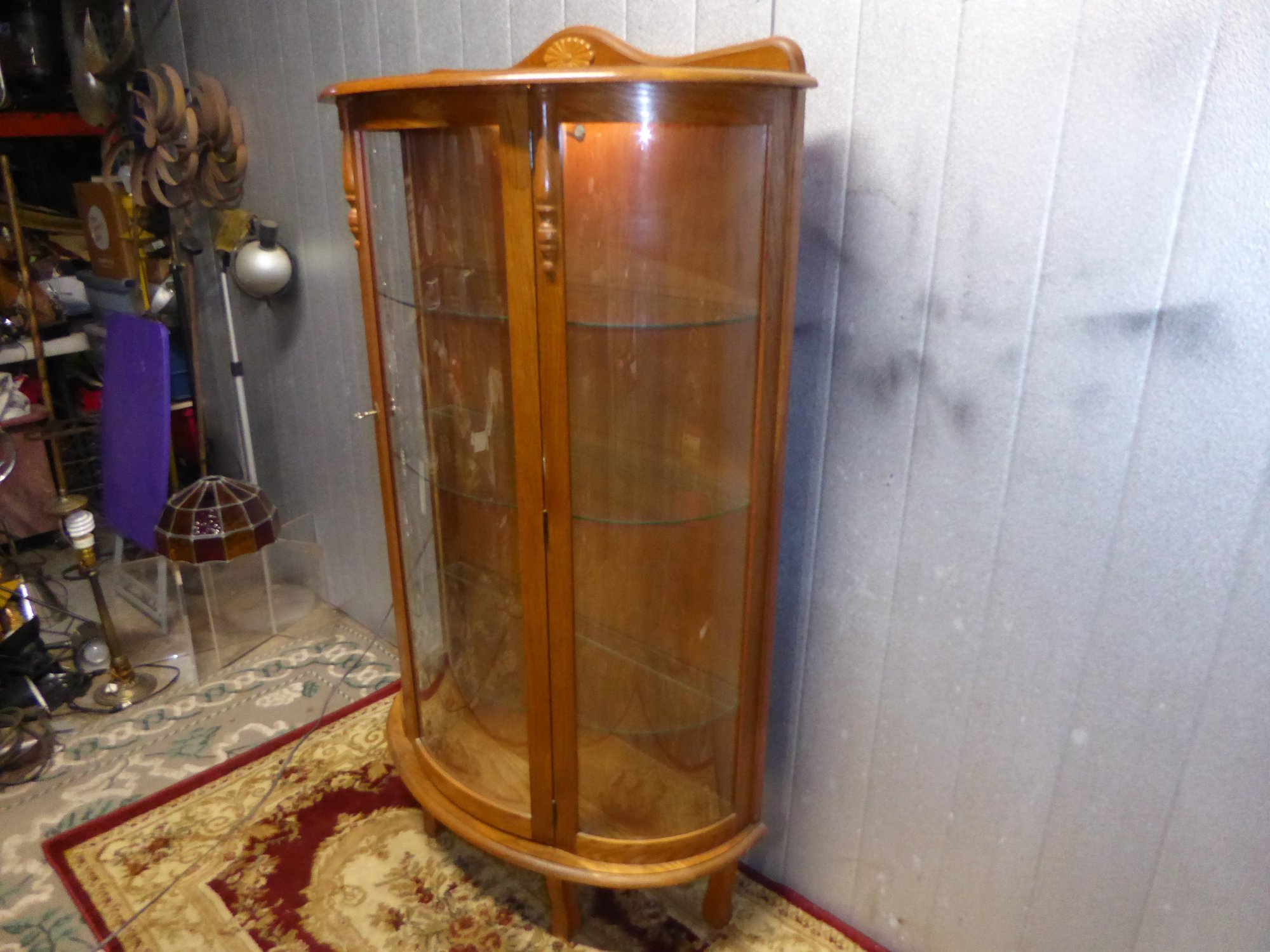 Curved Glass Front Curio Cabinet With Glass Shelves