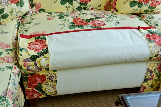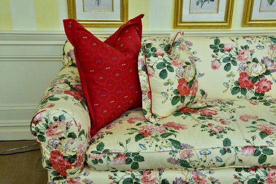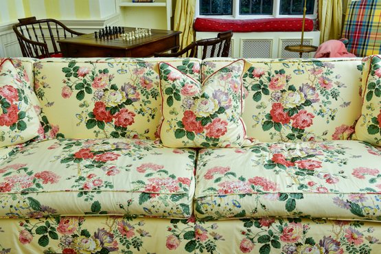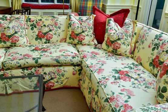 Condition: sunstruck on the rear and one cushion has a light stain. Otherwise, sofa is in very good condition - very well made. Please view all photos as they are deemed part of the description.