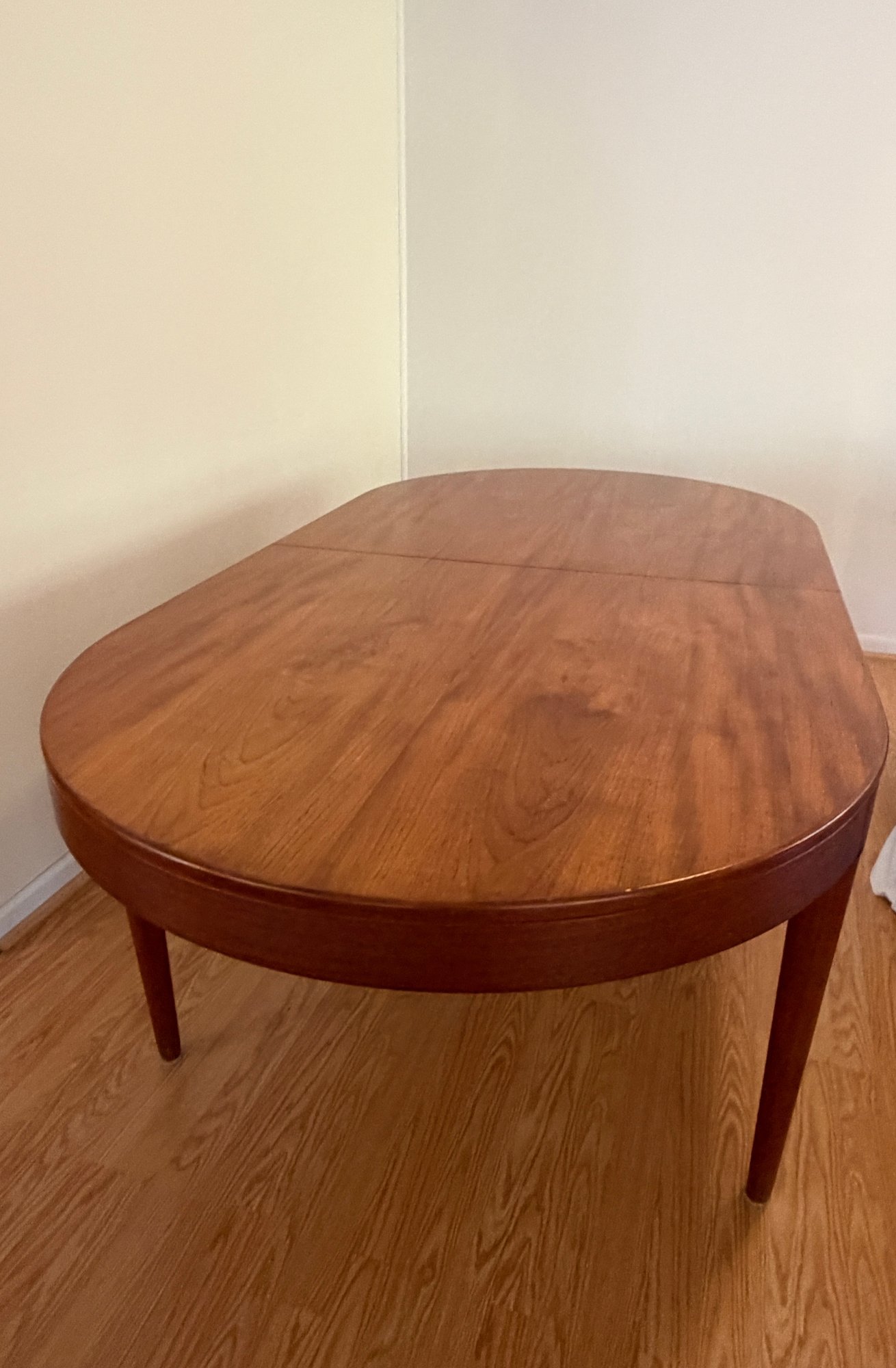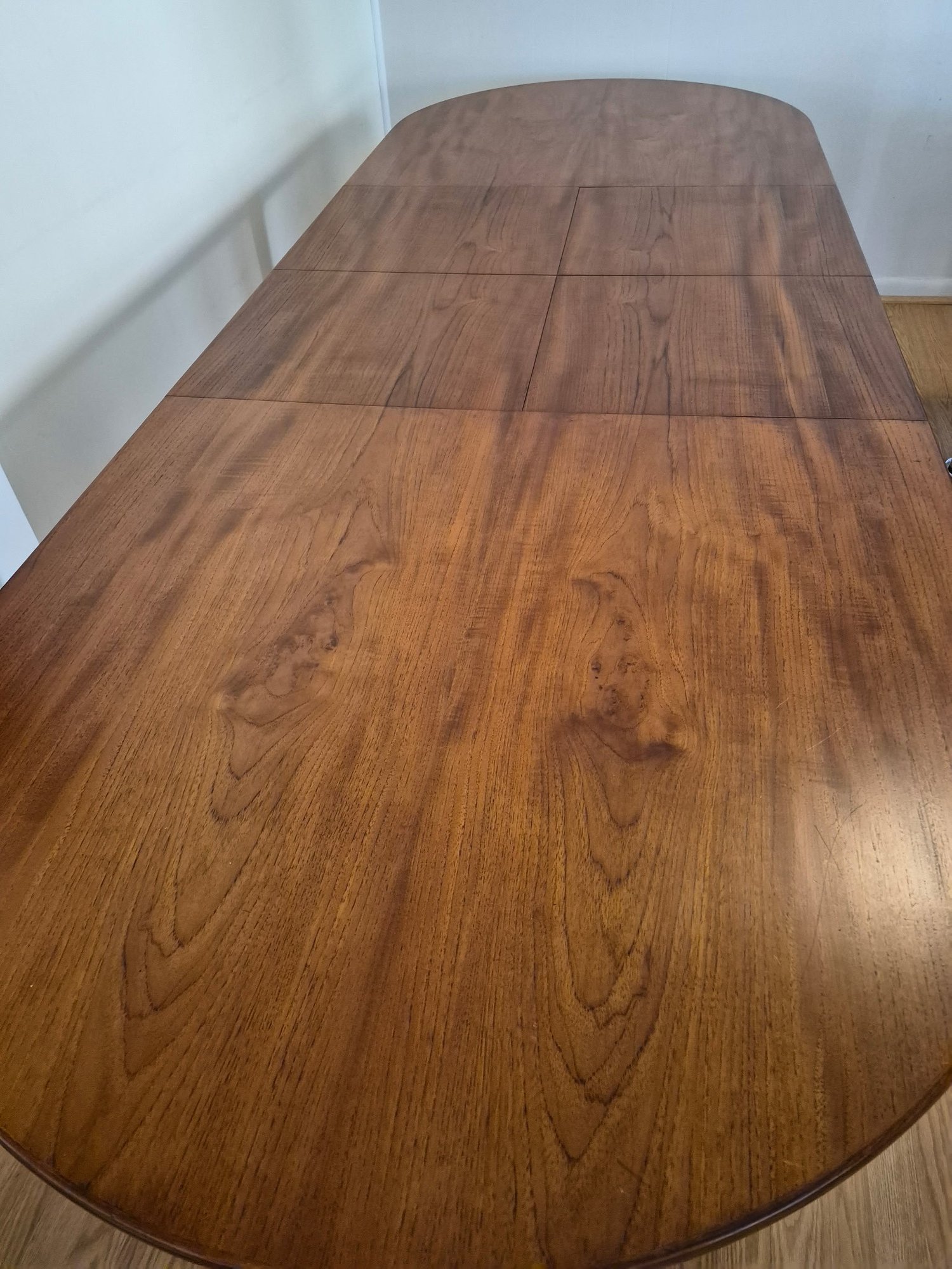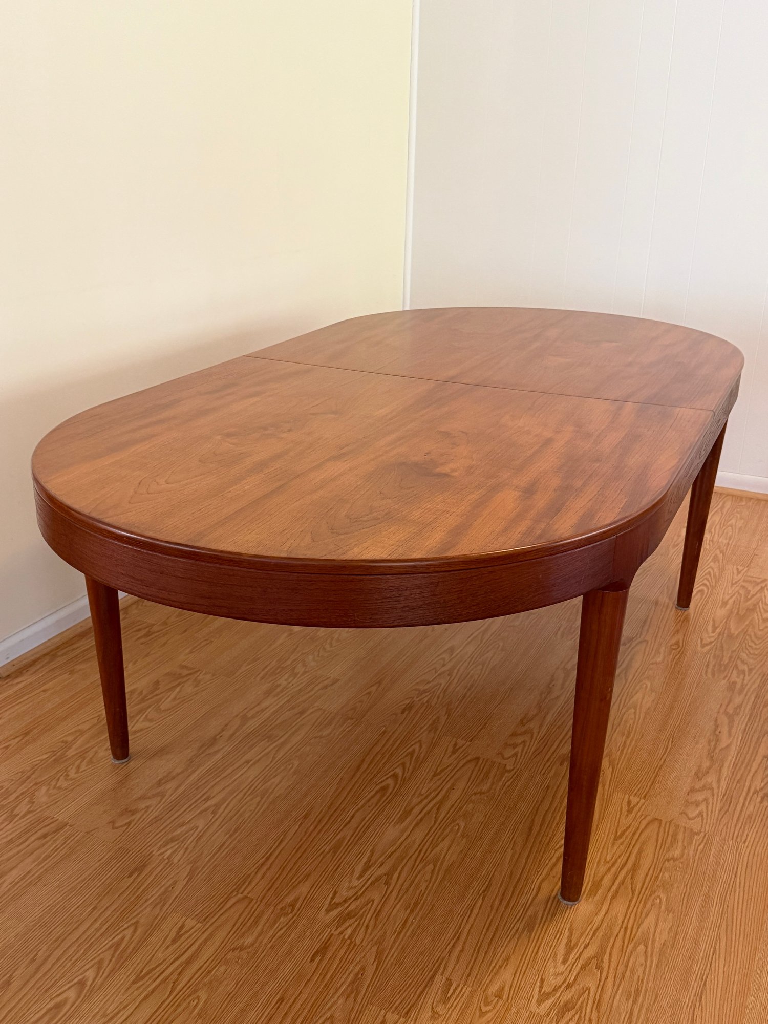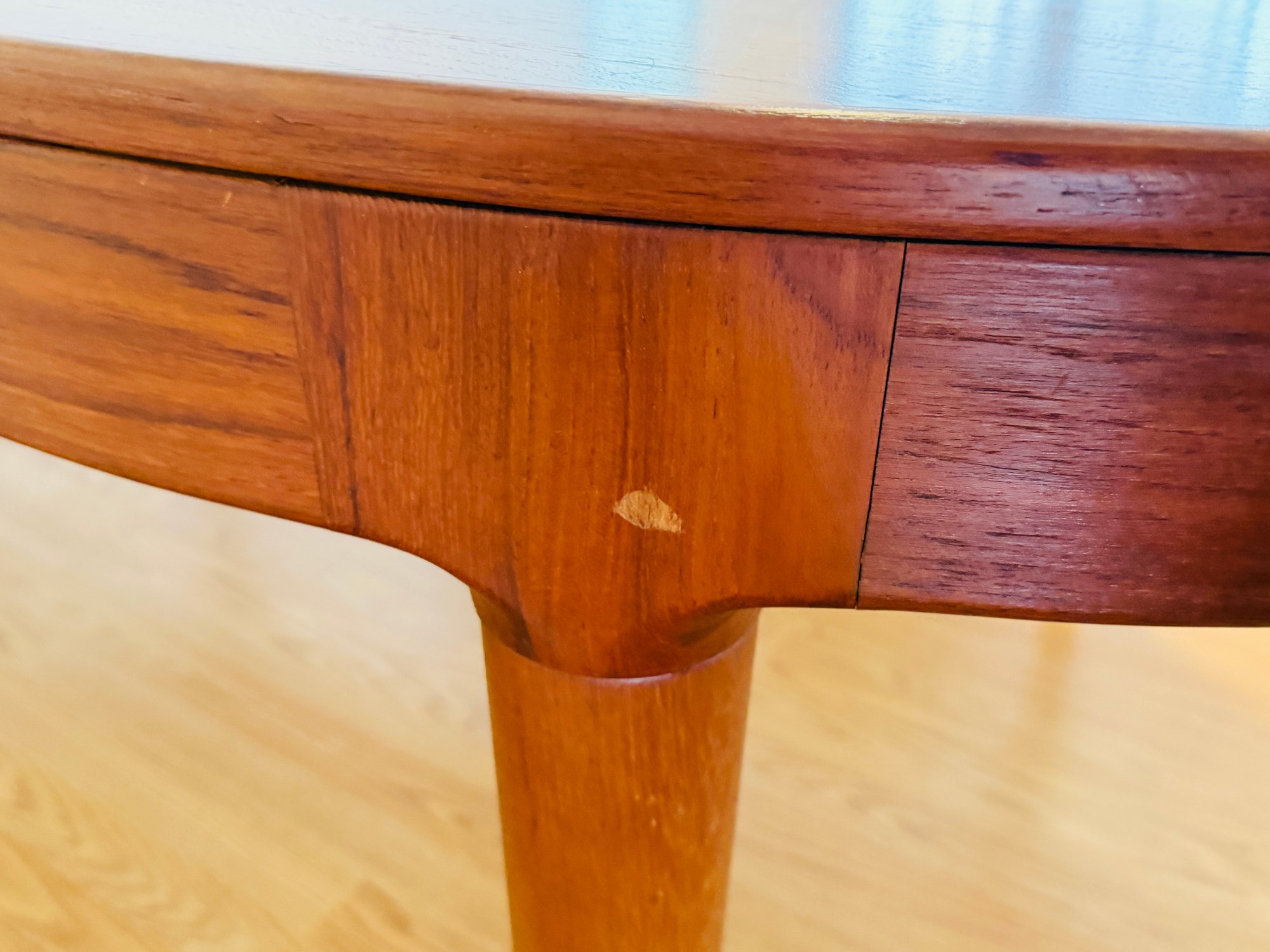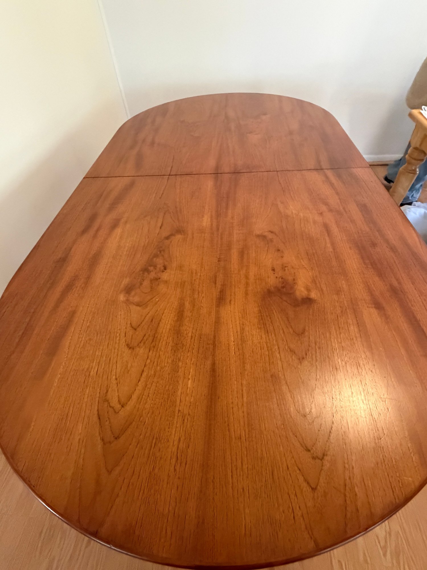 Mid Century Elegance with this teak Danish Modern Butterfly leafs dining table.