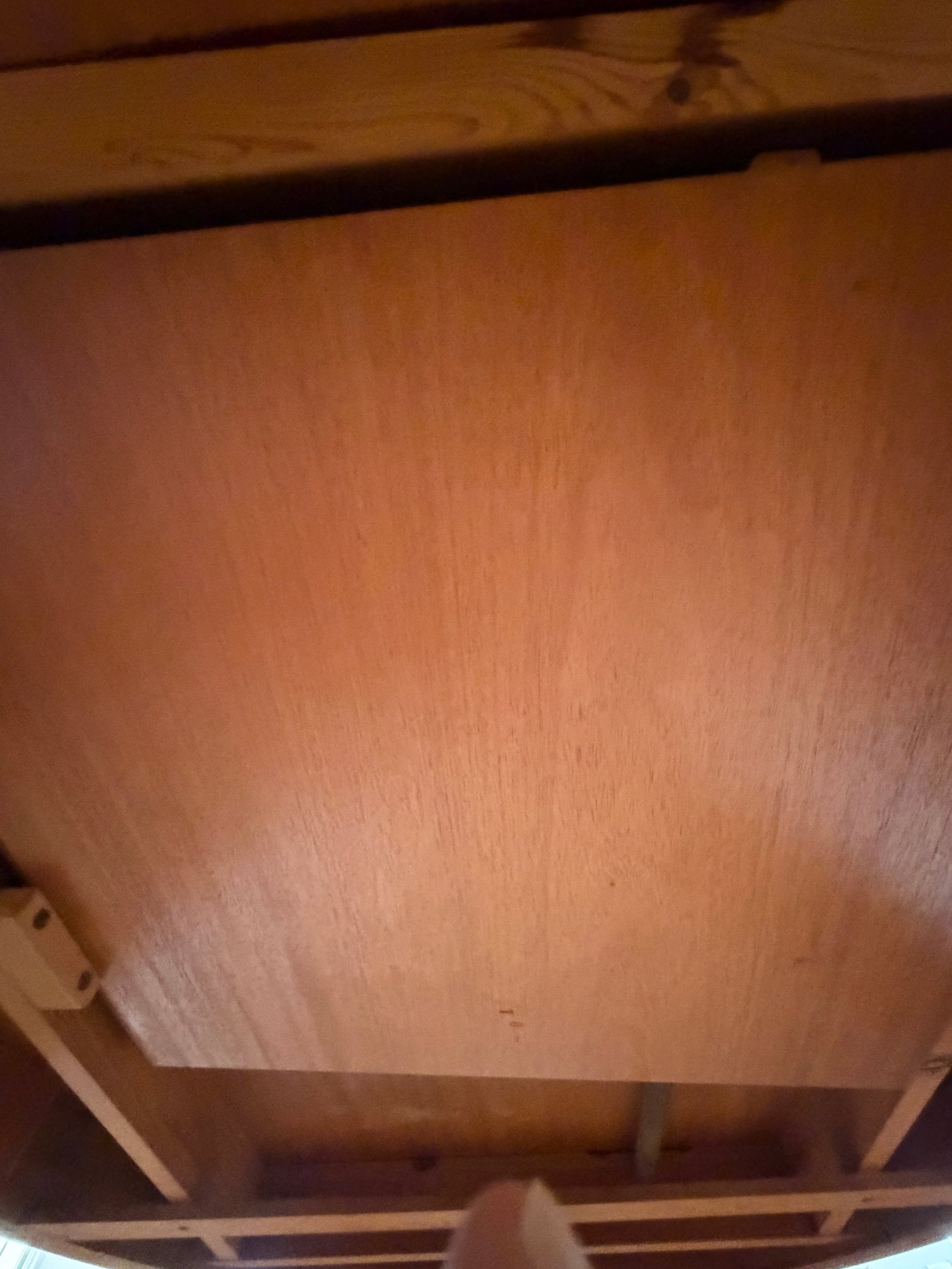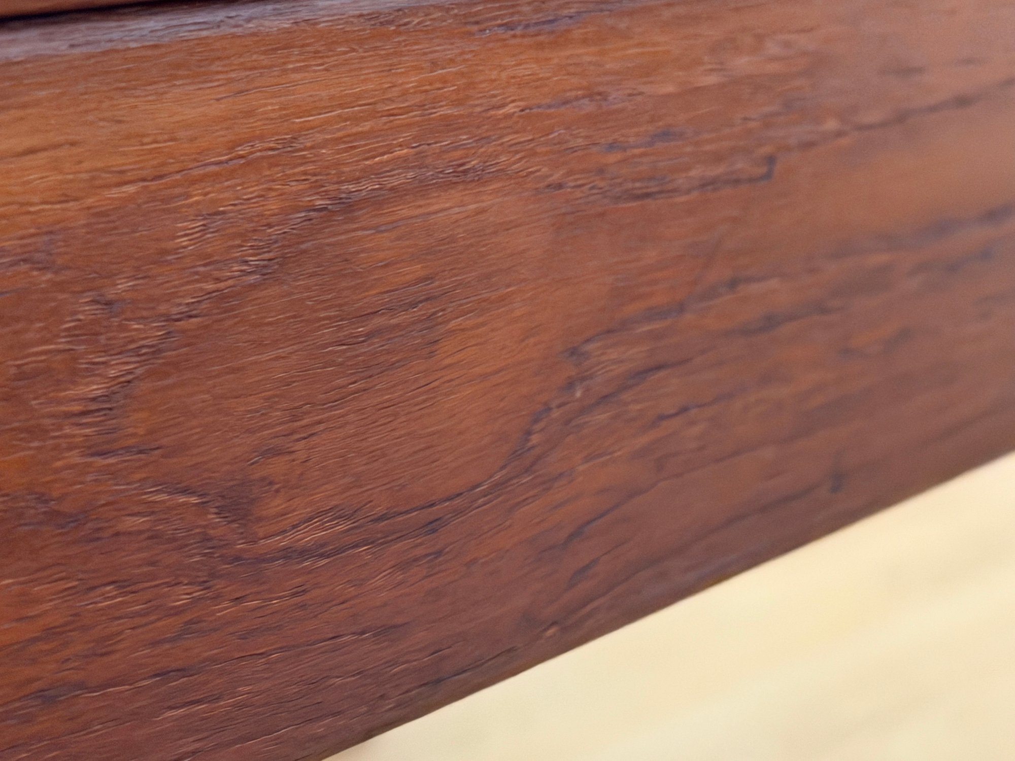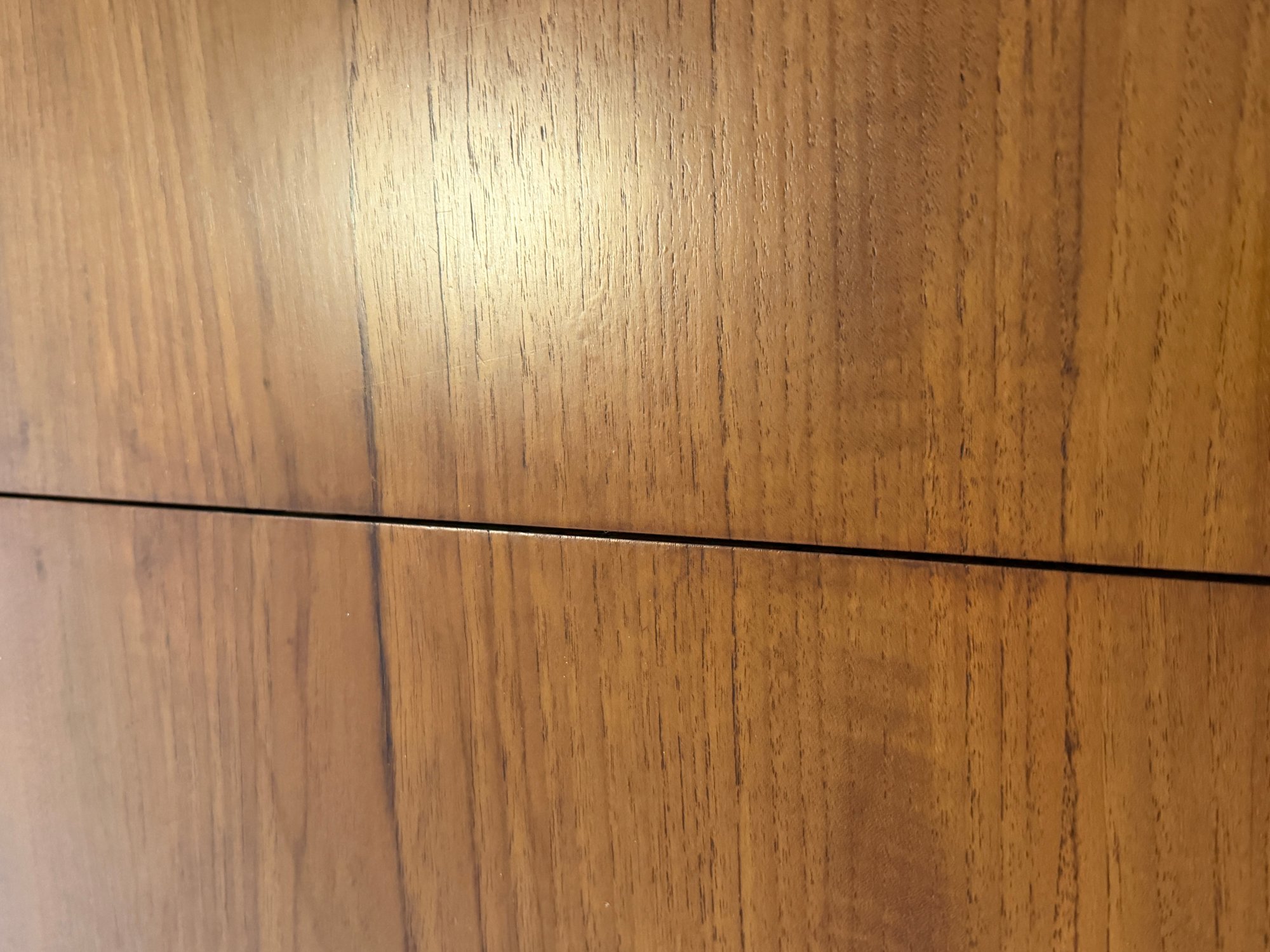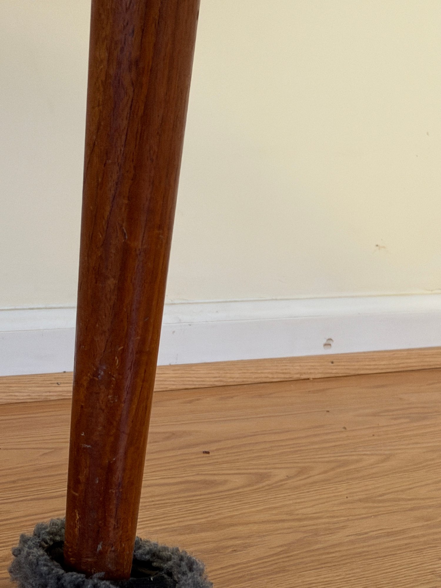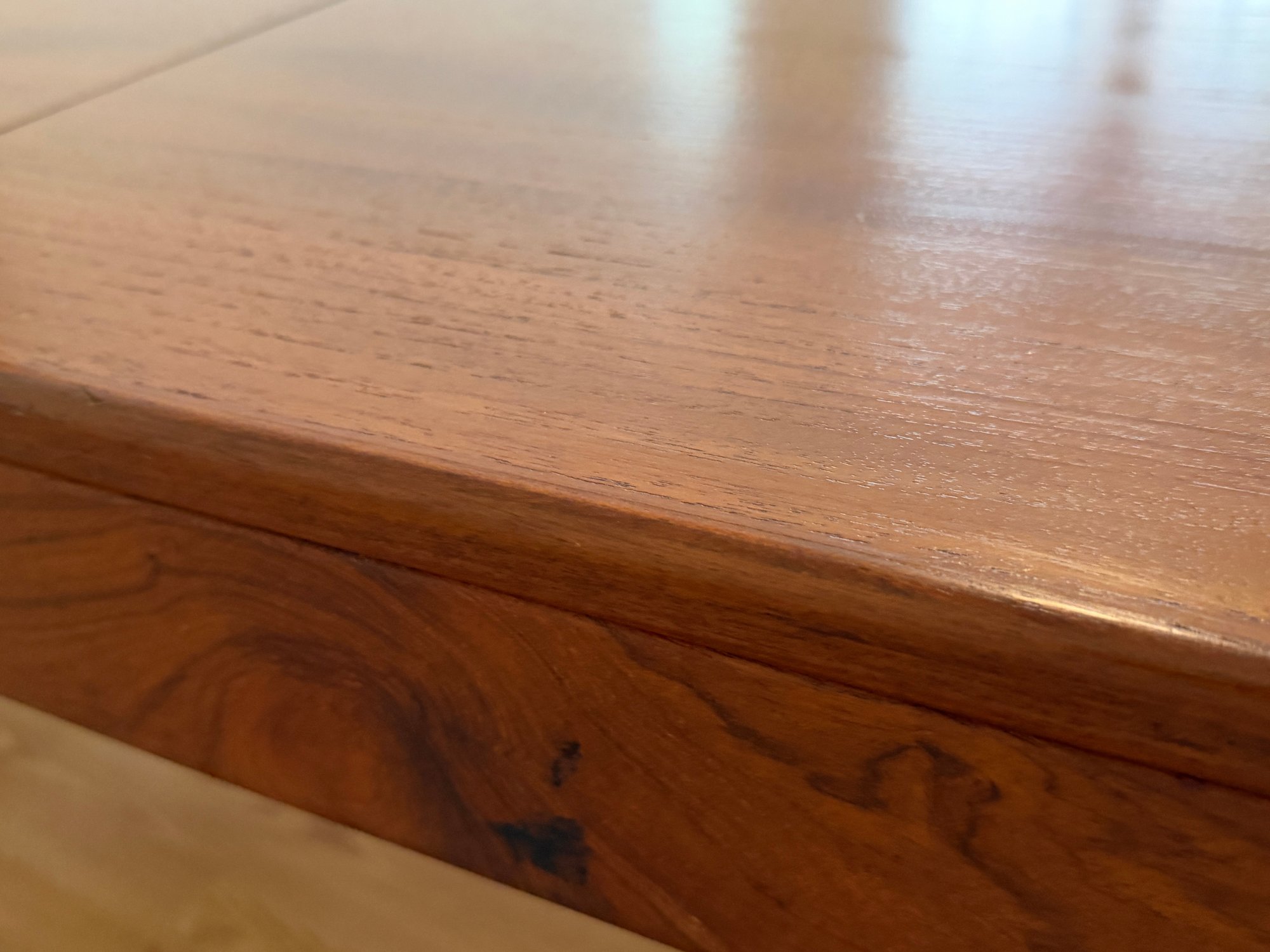 Mid Century Elegance with this teak Danish Modern Butterfly leafs dining table.