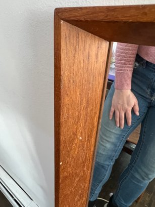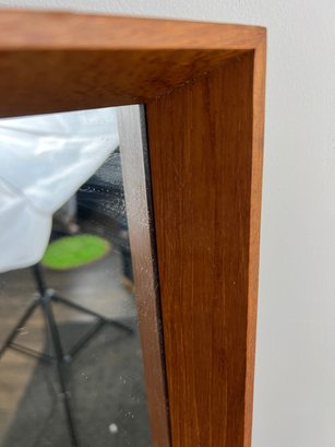 Beautiful teak or similar hardwood framed Danish modern mirror.