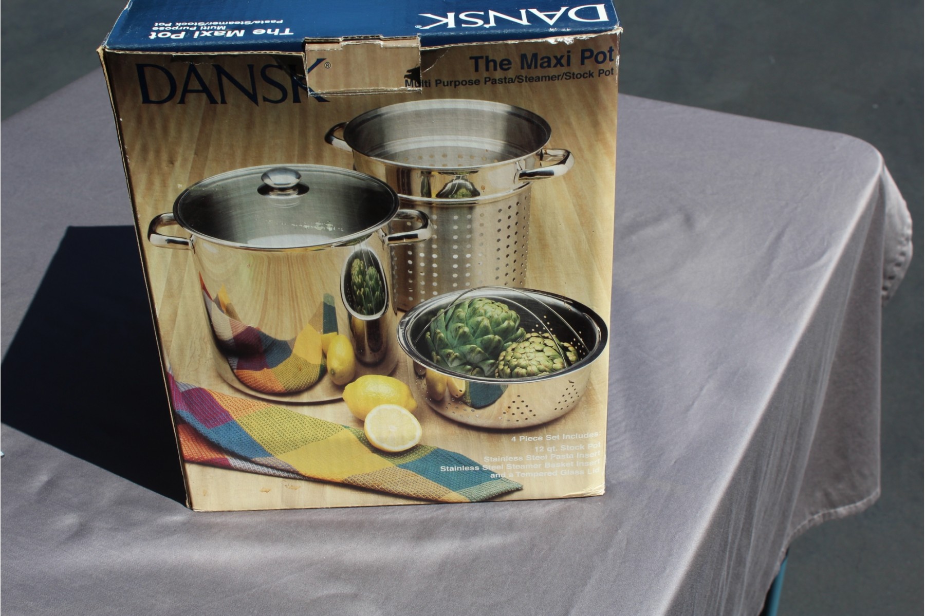 Excellent pot for cooking corn, potatoes, lobsters! You can boil or steam or use as a stock pot as well. Stainless steel. Originally price at $90, Dansk does not offer this great set anymore. Dansk Quality and utility!