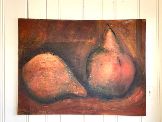 Pair of pears, oil on canvas with painted edges.
